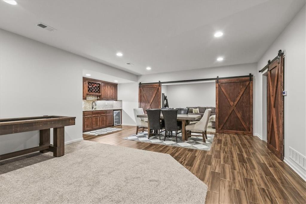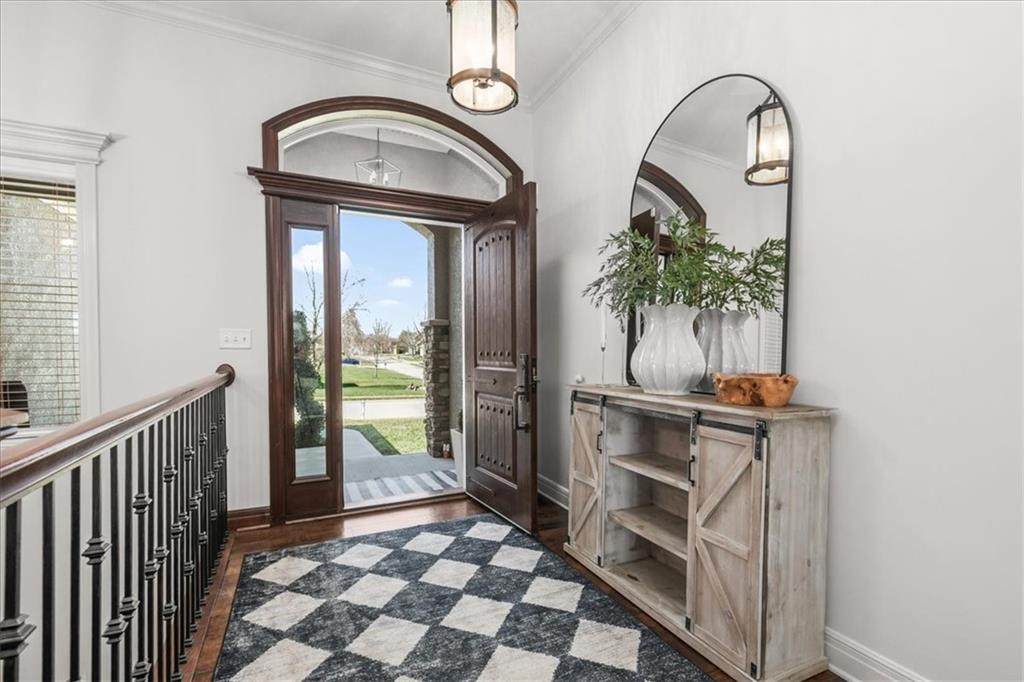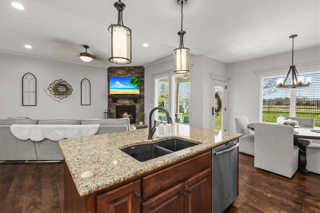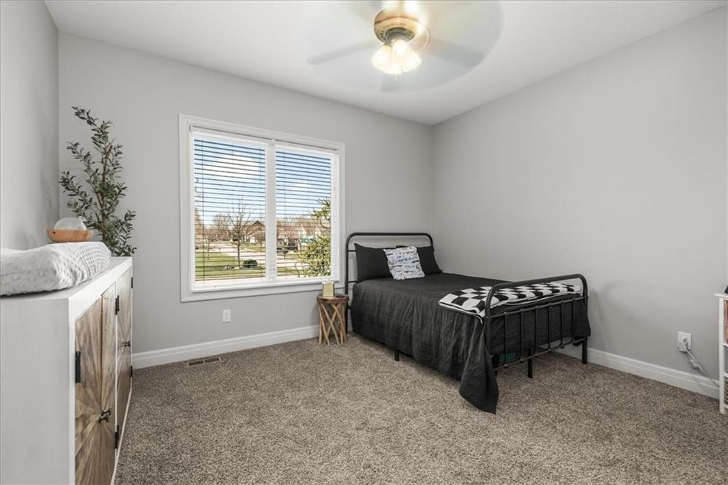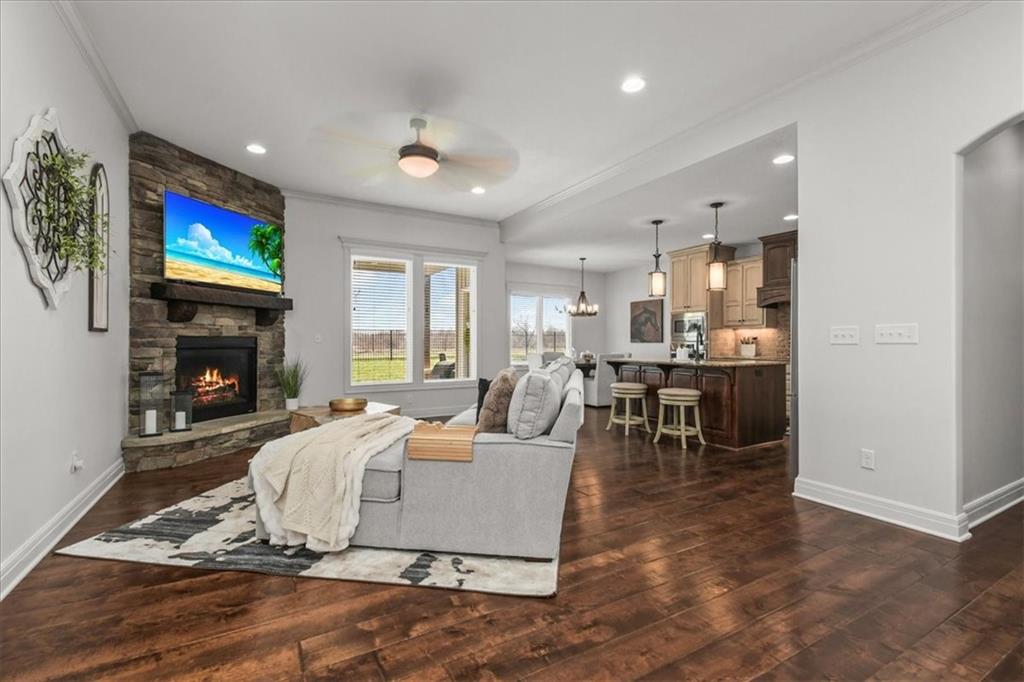 Experience the perfect blend of modern luxury and country serenity in this custom-built ranch-style masterpiece. Nestled in a quiet, secluded enclave, this home boasts an open-concept layout with 9’ and 10’ ceilings and high-end finishes. The chef’s kitchen is a showstopper, featuring Granite countertops, Rustic Alder custom cabinetry, and a large island, all accented by stunning travertine and stone backsplashes. Designed for peak efficiency and longevity, this Energy Star home features upgraded insulated polymer siding, oversized windows, and a high-performance HVAC system with a 16 SEER AC, iWave air purifier, and electric zoning. Car and boat enthusiasts will marvel at the massive 25-foot deep garage with extra-tall ceilings—perfect for large trucks or a wakeboard boat. The expansive finished basement is an entertainer's dream, showcasing a large bar area, custom rustic barn doors, and ample space for epic game nights. Retreat to the primary suite with its elegant tray ceiling, or enjoy the dual-sink vanity shared by the secondary bedrooms. Outside, the maintenance-free landscaping with Colorado river rock leads to a private east-facing patio. Overlooking peaceful farm fields, it's the ideal spot for sunrises or shaded evening BBQs. With a hydro-electric sump pump and high R-value insulated garage doors, every detail has been meticulously upgraded for comfort and peace of mind. Located near the scenic trails of Adams Dairy Road, this home offers a private retreat without sacrificing convenience.