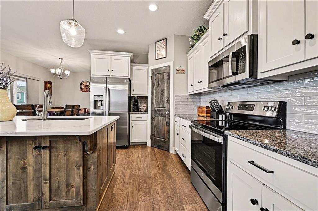 The covered front porch welcomes you home and invites you to slow down while sipping your morning coffee or enjoying a quiet evening sunset. Step inside and you’ll find a newer build designed for both everyday living and easy entertaining. The open-concept great room feels bright and welcoming, with a stone corner fireplace and a stunning quartz island that anchors the kitchen as its natural gathering place. A spacious corner walk-in pantry keeps everything tucked neatly away, while thoughtful finishes elevate the space from functional to beautiful. A smart and versatile layout elevates this home above the typical. The primary suite, laundry room, guest bedroom, and a dedicated office—offset with French doors—are all conveniently located on the main level, creating a floor plan that adapts seamlessly to work, rest, and hosting. Throughout the home, granite countertops, thoughtfully selected tile, and engineered hardwood flooring add layers of texture and timeless style. Downstairs, the family room and expanded bar area create the ultimate hangout zone—perfect for game days, movie nights, or weekend gatherings. All three bedrooms on this level with walk-in closets! Walk out to the patio for fresh air and added entertaining space, while the covered back deck—with added stairs to yard—offers yet another spot to unwind. Window blinds already in place add both comfort and convenience. Tucked into a quiet subdivision, you’ll enjoy quick access to shopping and dining at Zona Rosa, nearby airport access, and countless restaurant and entertainment options. Location, layout, and lifestyle—all wrapped into one beautifully designed package in the Park Hill School District!