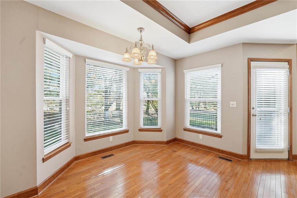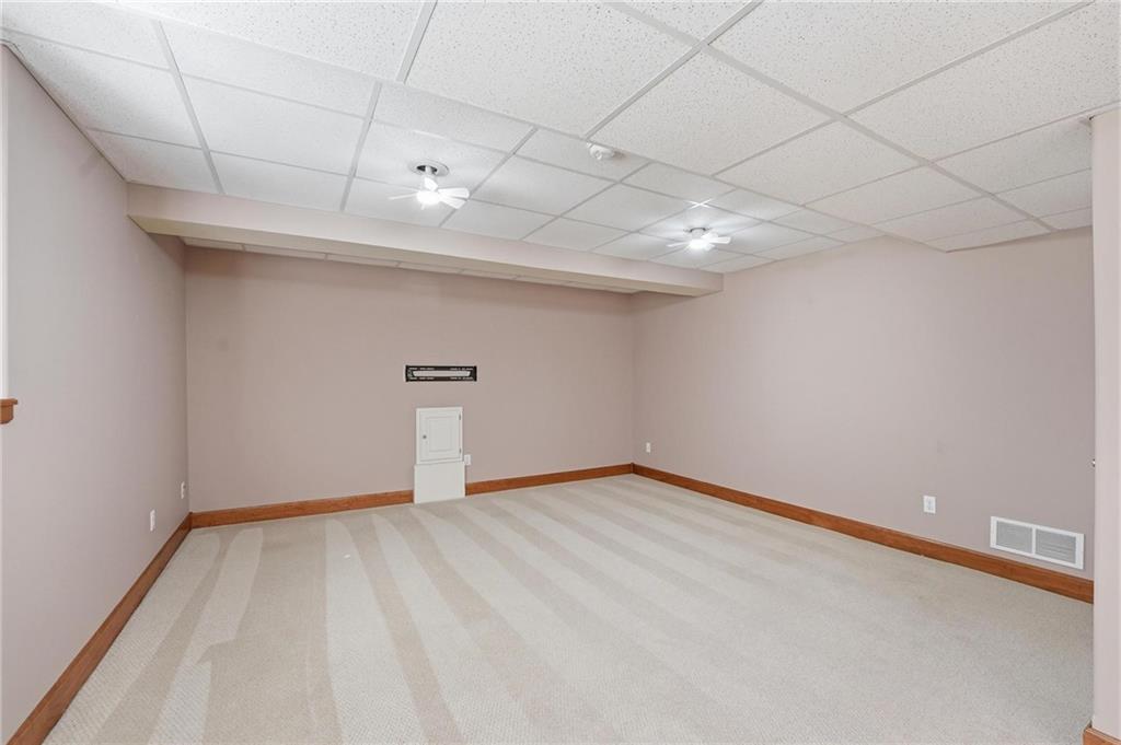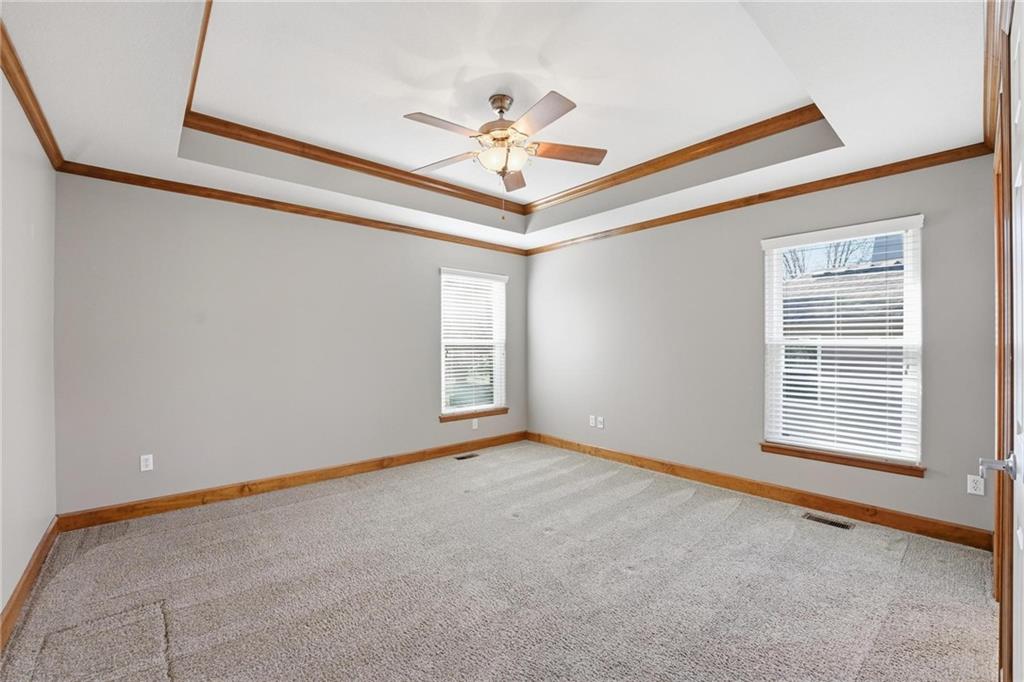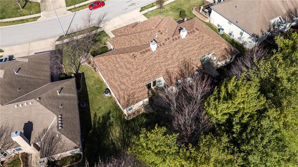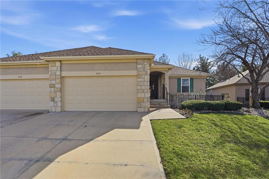 Maintenance-provided Raintree Villa in the highly sought-after Raintree Lake Neighborhood! This super clean, well-maintained home features soaring ceilings, abundant natural light, and a cozy gas fireplace. A flexible dining space offers room for two dining areas or a sitting area. Stainless steel appliances, plus washer and dryer stay. Spacious primary suite includes a walk-in closet and private bath with double vanity, separate shower, and jetted tub. Enjoy walkout access to the patio from the kitchen. A second bedroom perfect for guests. The partially finished basement offers additional living space with a full bath. Plenty of storage space. This has fantastic neighborhood amenities and low-maintenance living!