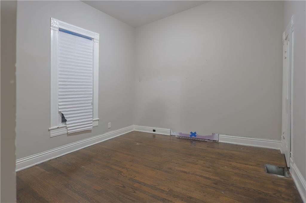 Charming 3-bedroom, 1-bath bungalow situated on a spacious double lot in a prime downtown location! This home features a welcoming front porch with classic stone columns, perfect for relaxing evenings. Inside you’ll find beautiful hardwood floors and timeless character throughout. The detached garage provides additional storage or workshop space. Upstairs offers incredible potential with sheetrock already completed — allowing for an additional 400–500 square feet of finished living space with just a little more work. Located just steps from the park and walking trails, this home combines location, charm, and opportunity. With a few finishing touches, you can truly make it your own!