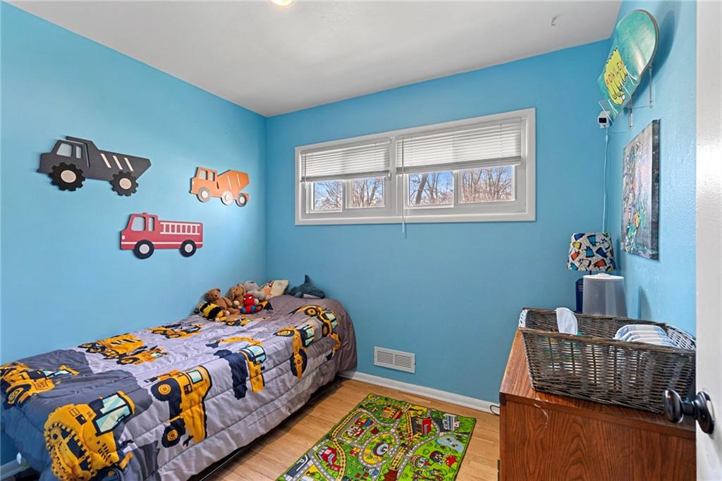 Welcome to this move-in ready ranch in South Kansas City! 3 bed, 1 bath home with a full and very dry basement offers comfort, convenience, and plenty of room to grow. Step inside to find nice wood flooring throughout and a bright, tiled, well set up kitchen with great cabinets and counter tops that makes everyday living and entertaining easy. The vinyl windows fill the home with natural light, creating a warm and welcoming atmosphere in every room. A main-level laundry area conveniently located in the converted rec room adds everyday practicality. Downstairs, the full basement provides endless possibilities whether you're dreaming of a finished living space, workshop, hobby area, or simply extra storage. You'll also appreciate the solid, dry foundation and the added security of a concrete storm room complete with lighting and electrical outlets. Out back, unwind on the deck overlooking your private fenced backyard, which backs to peaceful green space perfect for relaxing summer evenings, pets, or gatherings with friends and family. With easy highway access, commuting around Kansas City is a breeze. Plus, enjoy peace of mind with a roof and furnace that are just over a year old! This home truly offers comfort, charm, and room to make it your own. Schedule your showing today!