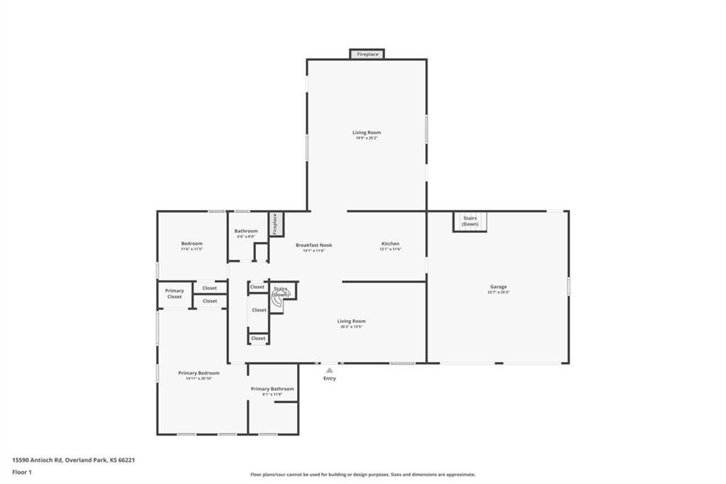 Rare opportunity in a prime Overland Park location with exceptional flexibility and future potential. Situated on a generous parcel along Antioch Road, this property offers the unique option to renovate the existing home, enjoy it as-is, or build your dream home from the ground up. The current all brick home is perfect for those needing main level living. The huge great room features a large woodburning fireplace that also has a built-in grill and smoker. For those considering new construction, the property includes an easement for a future driveway/street access off 156th Street, providing additional design possibilities and improved accessibility. City sewer hookup is already onsite, a valuable advantage for future development. With no HOA restrictions, you have the freedom to create the property that fits your vision. In addition to the home, the property features a large detached all brick shop/garage, ideal for hobbyists, contractors, car enthusiasts, storage, or workspace needs which is a rare find in this area. The location offers convenient access to award winning Blue Valley Schools, shopping, dining, parks, the hot BluHawk development, and major highways while still providing space and privacy. Whether you’re a homeowner seeking land and flexibility, or a builder looking for a prime redevelopment opportunity, this property presents exceptional potential in a highly desirable Johnson County setting.