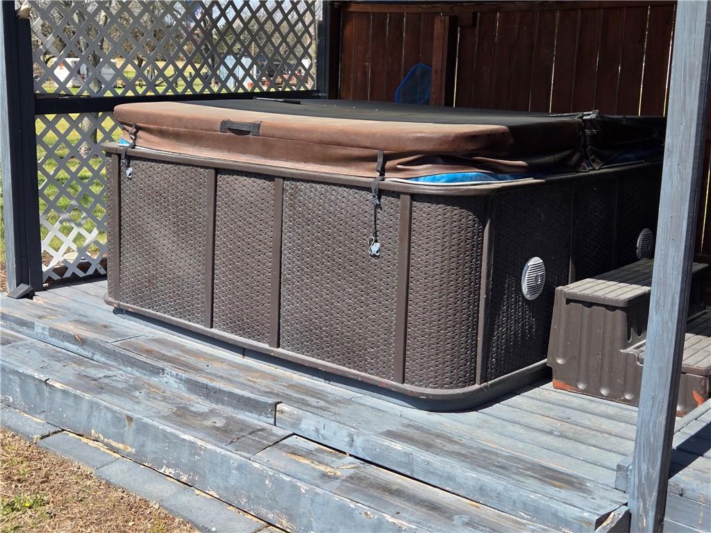 If you are looking to move to the country but stay on a blacktop road with 5+/- acres, this is the one for you! Three bedrooms and two and one half baths in a tri-level home with a metal roof. The house features two brick fireplaces with woodburning inserts to keep the house cozy on cold winter days. There is a hot tub on the covered back deck. Did I mention the two carports? One is 20'x18' and is 9' tall, the other is 25'x18' and is 13' tall. There is also a two car garage with plenty of shelving and workbench areas and a half bath as well. The kitchen comes with hard surface countertops and double stainless steel sink. The laundry room is on the same level as the bedrooms. Newer windows throughout. Set up an appointment and come take a look at this little farm home.