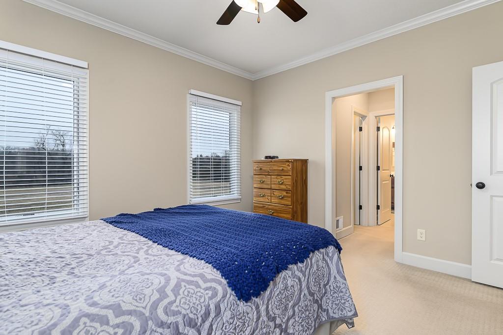 IMMACULATE 3-BED 2-BATH ALL BRICK RANCH ON 6 ACRES WITH UNFINISHED BASEMENT AND EXTRA GARAGE SPACE! This move-in ready country home features hardwood floors in the kitchen and dining room, a beautiful kitchen with quartz counters, and a large living room with upgraded carpet throughout the main living areas. The main-level laundry room adds everyday convenience. The primary bedroom suite offers his-and-her walk-in closets and a private bath with double vanities and a large walk-in shower. The full basement is unfinished but already stubbed for a full bath, giving you room to expand. Outside, you’ll appreciate the detached 20x25 garage for extra storage or workspace, all-brick construction, paved roads, and natural gas service. Both the peaceful 6-acre setting and the easy access to highways and the city make this property a great fit for buyers who want country living without giving up convenience.