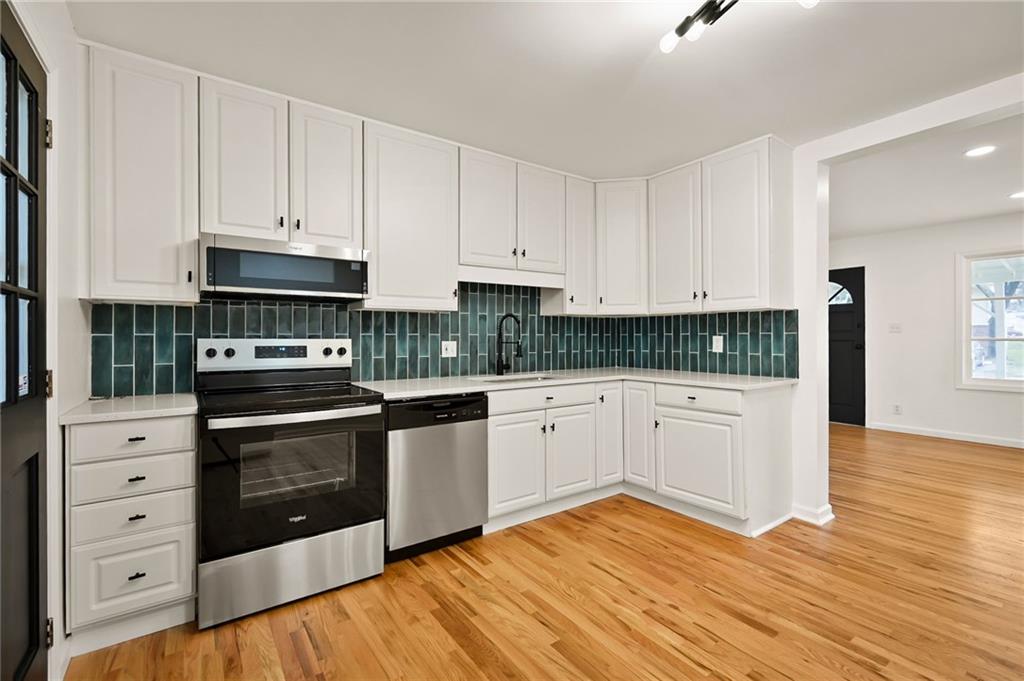 This beautifully updated ranch-style home offers an open-concept main living space and an impressive list of updates from head to toe. The main level features refinished hardwood floors, fresh interior paint, and updated light fixtures throughout, creating a bright and welcoming atmosphere. The layout includes two full bedrooms and two full bathrooms on the main level, making it both functional and comfortable. The primary suite features a generously sized closet and a fully updated bathroom with a tiled shower and bathtub, new LVP flooring, updated vanity, and modern hardware. The hall bathroom has also been completely updated with a beautifully tiled shower and stylish finishes. The kitchen has been thoughtfully refreshed with new granite countertops, a tiled backsplash, updated hardware, stainless steel appliances, and a new faucet—perfect for both everyday living and entertaining. The finished basement adds incredible additional living space, including a third bedroom and a fully updated bathroom featuring a tiled shower and updated finishes. There is also a fourth non-conforming bedroom, along with plenty of additional room for storage. Brand-new carpet has been installed throughout the basement. Outside, the property offers excellent parking and outdoor amenities, including a one-car attached garage and an additional carport. Enjoy relaxing on the covered rear porch, graciously sized corner lot, and take advantage of the fully enclosed shed, perfect for yard tools, gardening equipment, or additional storage. With its thoughtful updates, flexible living spaces, and fantastic features throughout, this home truly is a must-see.
