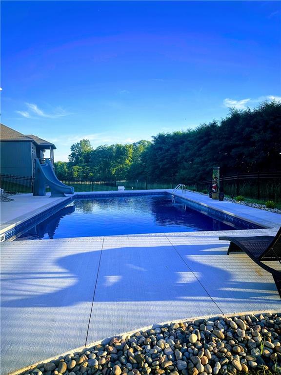 Reverse 1.5 Story, with private Back Yard Oasis! Less than 3 years new, and located in one of the Northlands most desirable newer subdivisions, this home offers the advantages of new construction- without the wait or added expense. All the upgrades and finishing touches have already been completed for you, including custom window coverings, upgraded trim package, enhanced elevation details, fencing, and an incredible 20x40 inground heated pool, with slide and diving board and full-width bench across the shallow end, expanded concrete, and fire pit area. Move in and enjoy what others are still budgeting and building. Enjoy peaceful wildlife views in your own backyard. . This prime location is just minutes from ,restaurants, shopping, easy Hwy access, and KCI Airport. Only 1/2 mi. down the road are NKC and Staley's highly regarded schools.