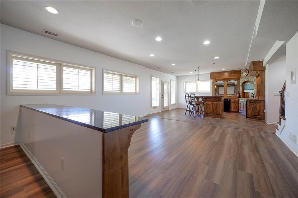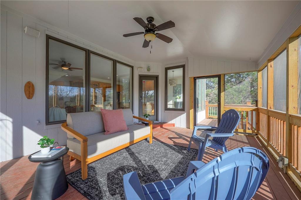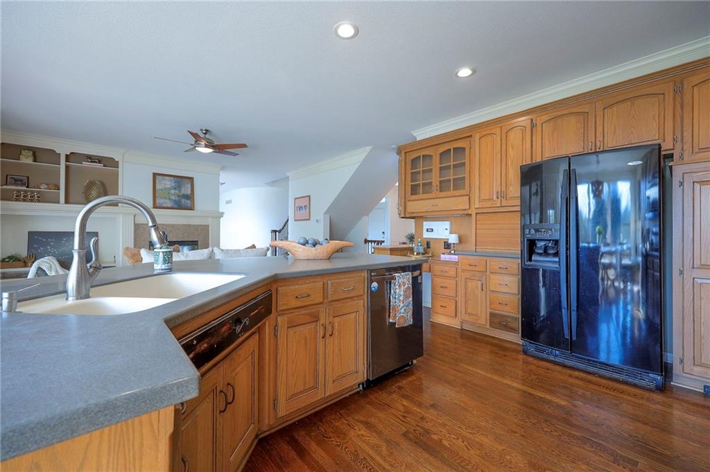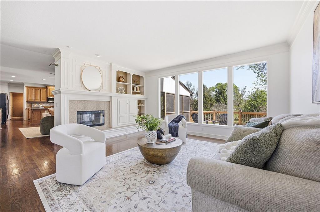 Beautiful in Brookhighland! This light filled & spacious two-story home offers 5 bedrooms and 4.1 baths. Thoughtfully designed with dedicated spaces for office, formal living and dining that flow seamlessly into an open floor plan hearth room. A half bath and one of two full-sized laundry rooms complete this level. Ideal for both entertaining and everyday living. With stunning views to green space, step outside into a beautifully built screened porch that opens on to the decks. Upstairs, the expansive primary suite provides a private retreat with a luxurious en suite bath, walk in closet, cupboard storage and a separate den area- complete with a second laundry. Additional generously sized bedrooms include one with its own en-suite and two that share a Jack and Jill bath—one enhanced by a versatile bonus space. The finished walk-out basement is perfect for entertaining or relaxing, complete with a 5th bedroom, full bath, movie screen, and bar. Step right out to the backyard that backs to expansive green space for added privacy and scenic views. Do not miss the oversized garage! With space for up to FIVE cars! Tandem space and custom built car-lift make this garage one of a kind! This custom built home is perfect for everyday life and filled with "extras", made for the good life and entertaining. NEW roof and gutters to be installed the week of May 4th and new garage doors coming soon (on order). Located in the award-winning Blue Valley School District, this home also offers quick access to Highway 69 and is just minutes from everything that makes Overland Park consistently recognized as one of the best places to live and work!