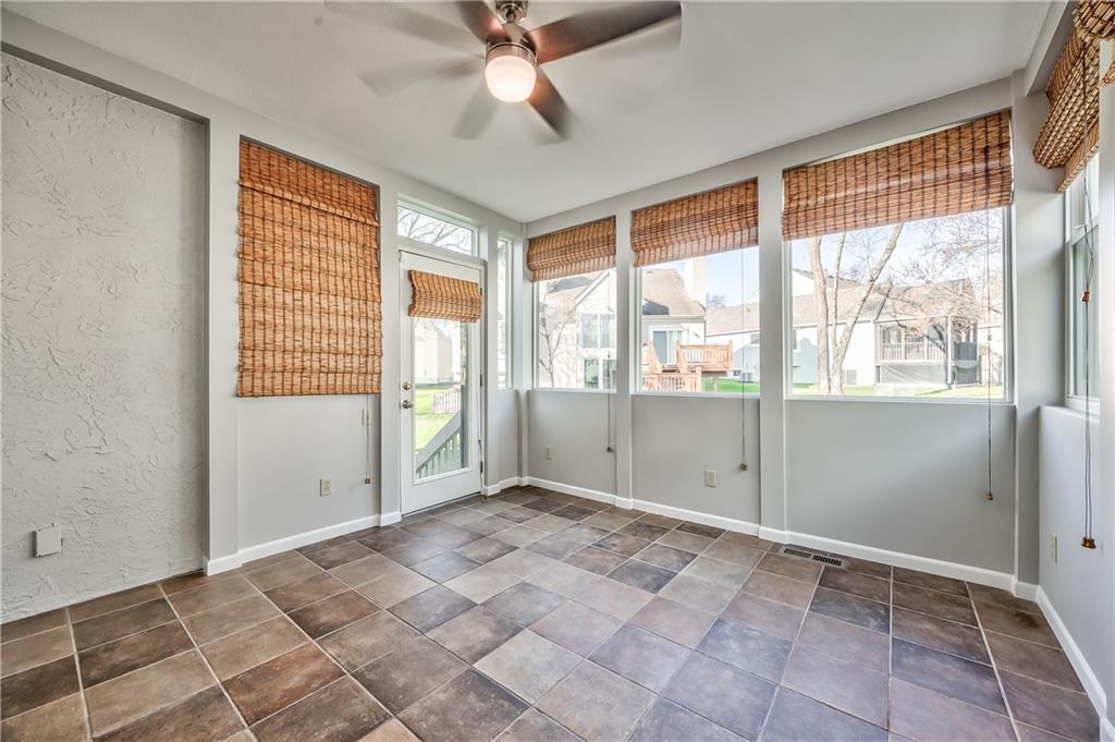 Move right in to this beautifully maintained 4-bedroom, 3-bath villa! The upper level features gorgeous hardwood floors throughout and an updated primary suite (2025) complete with a walk-in closet, shower, and NEW relaxing tub, vanity, flooring and toilet. The kitchen shines with newly updated countertops and backsplash (2025), offering both style and functionality. You’ll love the abundant storage space, including generous closets plus extra room in the garage and basement. The finished lower level provides additional living space with a spacious family room and bonus room — perfect for a home office, gym, or guest area. Unwind year-round in the all-season sunroom just off the kitchen — the perfect spot to enjoy your morning coffee or evening relaxation.