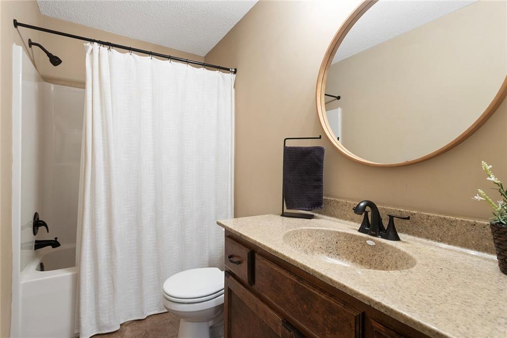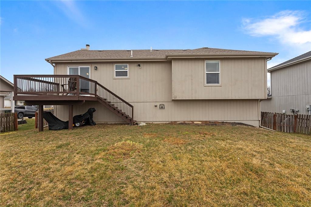 This very well maintained home is ready and waiting for you! Hardwood floors on the main floor elevate this home and make the open-concept living, kitchen and dining flow seamlessly. Vaulted ceilings in main living spaces make this home feel spacious and roomy for entertaining! Kitchen has timeless stained wood cabinets and granite countertops. Living room has stone fireplace to keep cozy when the temperatures dip! Primary bedroom features a walk-in closet and a private bathroom. Two additional bedrooms and one bathroom on the main floor. Downstairs the finished family room gives more room to spread out and/or create an office for remote work. Backyard is already fenced! Furnace and A/C only 3 years old!