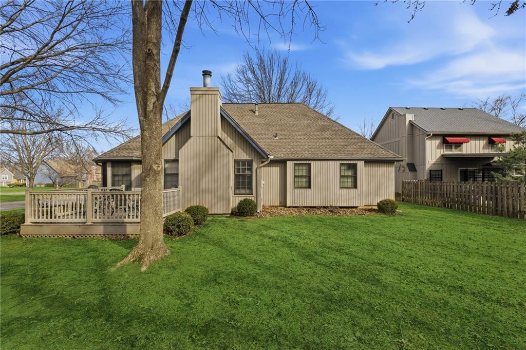 True ranch home that is handicap accessible, offering convenient single-level living in a quiet Overland Park neighborhood. The home includes a wheelchair ramp located in the garage, providing easy access into the home; the ramp can remain with the property. Inside, you’ll find a warm and inviting layout featuring a spacious great room with vaulted ceilings, beautiful wood trim, and a cozy brick fireplace perfect for gatherings. The home flows into a bright formal dining area and an open kitchen with granite countertops, abundant cabinetry, and ample workspace for cooking and entertaining. The primary suite offers a comfortable retreat with large windows and a walk-in closet. Main-level laundry adds everyday convenience. The home also features a full unfinished basement, offering excellent potential to add significant square footage and customize the space to fit your needs. Enjoy the private deck and backyard ideal for relaxing or entertaining. Don’t miss out on this rare opportunity!