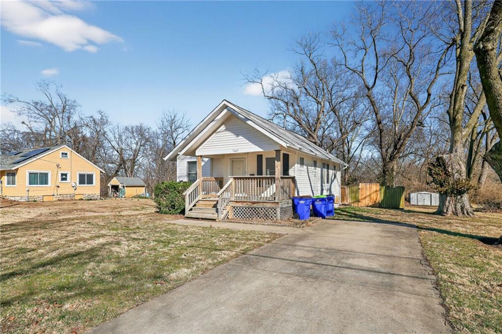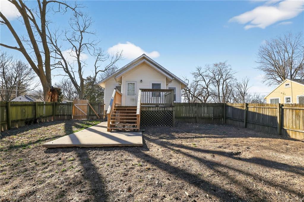 Charming 2-bedroom, 1-bath bungalow in the heart of Raytown offering loads of curb appeal and a warm, inviting feel! Step inside to find neutral colors and abundant natural light that create a bright and airy atmosphere throughout. The dining room flows seamlessly into the living room, giving the home a spacious, open feel perfect for everyday living and entertaining. Both bedrooms feature comfortable carpeting and ceiling fans for added comfort. The kitchen offers convenient access to a large laundry room, providing extra storage and functionality. Enjoy outdoor living on the wood deck overlooking a large lot just shy of 1 acre — plenty of space for gardening, pets, play, or future possibilities. The wood privacy fence adds seclusion and charm, making the backyard your own private retreat. This delightful bungalow combines character, comfort, and space — don’t miss your opportunity to call it home!