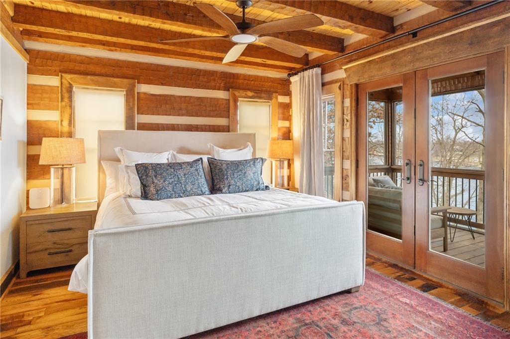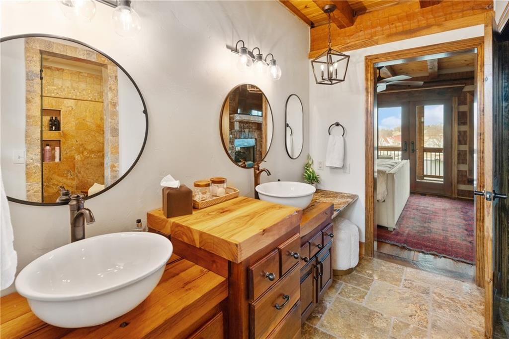 Magazine-Worthy Waterfront Living! Welcome to this stunning turn-key waterfront retreat where craftsmanship and thoughtful design shine in every detail. From the rich reclaimed oak floors to the beautifully crafted walnut cabinetry, this home blends elegance with warmth, creating a grand yet inviting atmosphere. Soft, timeless tones and numerous recent updates make this home feel both stylish and comfortable. The spacious layout offers 5 bedrooms plus 2 non-conforming rooms, providing plenty of space for family and guests. A charming bunk room adds a fun touch for gatherings, while the fully furnished movie theater room is perfect for cozy nights in. The primary suite opens directly to a peaceful screened-in porch, allowing you to wake up and step outside to the sights and sounds of the lake. Take in panoramic views of the quiet cove from the extended maintenance-free composite deck. Outdoor living continues with a cement patio, hot tub, and beautiful stone steps leading down to the dock, creating the perfect setting to enjoy both indoor and outdoor lake living. Natural rock walls enhance the landscape, while the private dock with boat lift and jet ski port are ready for your enjoyment. Located behind a buoy in a peaceful cove, this spot is ideal for fishing or simply soaking in the tranquility of lake life. You will love the abundance of fish including catfish, bass, crappie, and walleye—truly a fisherman’s paradise. Situated on the beautiful 630-acre lake at Lake Viking, residents also enjoy access to a full-service marina and an active lake community. Recent improvements include new zoned heating and cooling, new carpet, a remodeled bathroom, updated fixtures, and new lighting, adding even more value and comfort. This exceptional lake home offers the perfect blend of luxury, comfort, and natural beauty—all set within the picturesque surroundings of Lake Viking. A property like this must be experienced in person to truly appreciate.