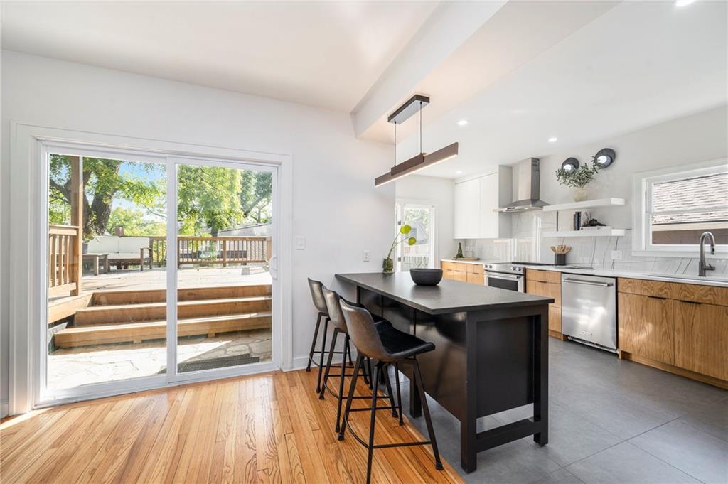 Follow your dreams to one of the most beloved streets in Westwood, where this classic home has been given a stunning modern refresh! Beyond the front porch and inside you'll be met with restored hardwoods that lead the way through an easy, open flow connecting the living, dining, and kitchen spaces. Looking for a cozy corner to sneak away? French doors open to a charming alcove den - perfect for a home office, reading retreat, or whatever your lifestyle calls for. And the kitchen? Heart throbber! Oversized porcelain tile, custom white oak cabinetry, gleaming quartz countertops, and newer appliances set the stage for a space that’s equal parts stylish and functional. The freestanding Caesarstone island anchors it all - ideal for morning coffee or evening cocktails. The fun continues out back! A massive newly stained deck (over 600 square feet!) creates the ultimate outdoor hangout for grilling, relaxing, and hosting friends. The front and back yard was freshly sodded last October, so the outdoor space feels just as new as the inside. Upstairs delivers comfort and convenience with laundry, two secondary bedrooms, a beautifully updated guest bath, and a thoughtfully reimagined owner’s suite. The primary retreat has been redesigned to maximize space and flow, complete with a walk-in closet and spa-inspired en suite. Dual vanities, skylights, a freestanding soaking tub, and a stunning Porcelanosa Spanish tile shower with a lava rock floor makes this bathroom ELITE! And yes — there’s more. The finished basement is a rare bonus in this area, offering a conforming bedroom, full bath, and additional living space perfect for guests, movie nights, or a quiet escape. The 2 car garage connects with a bump out storage area. Location? HARD to beat. Just a short stroll to the Westwood Hills shops and Country Club District. Come grab this experience and lifestyle upgrade!