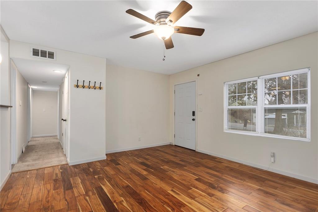 This charming 3-bedroom, 1-bathroom home is all on one level and sits on a desirable corner lot. Enjoy the convenience of easy highway access and being just moments away from an array of restaurants, shops, and more! The kitchen comes equipped with sleek stainless steel appliances, all of which are included. The roof, HVAC, and windows are all newer, ensuring peace of mind and efficiency. The home also features real stucco siding for lasting durability. Step outside to the backyard, perfect for entertaining, with a cozy fire pit and lounge chairs. The well-built shed in the backyard also stays with the property, offering extra storage space. For peace of mind, the Vivint security system is included as well! Come take a look at this affordable cutie today! *Some photos have been virtually staged*