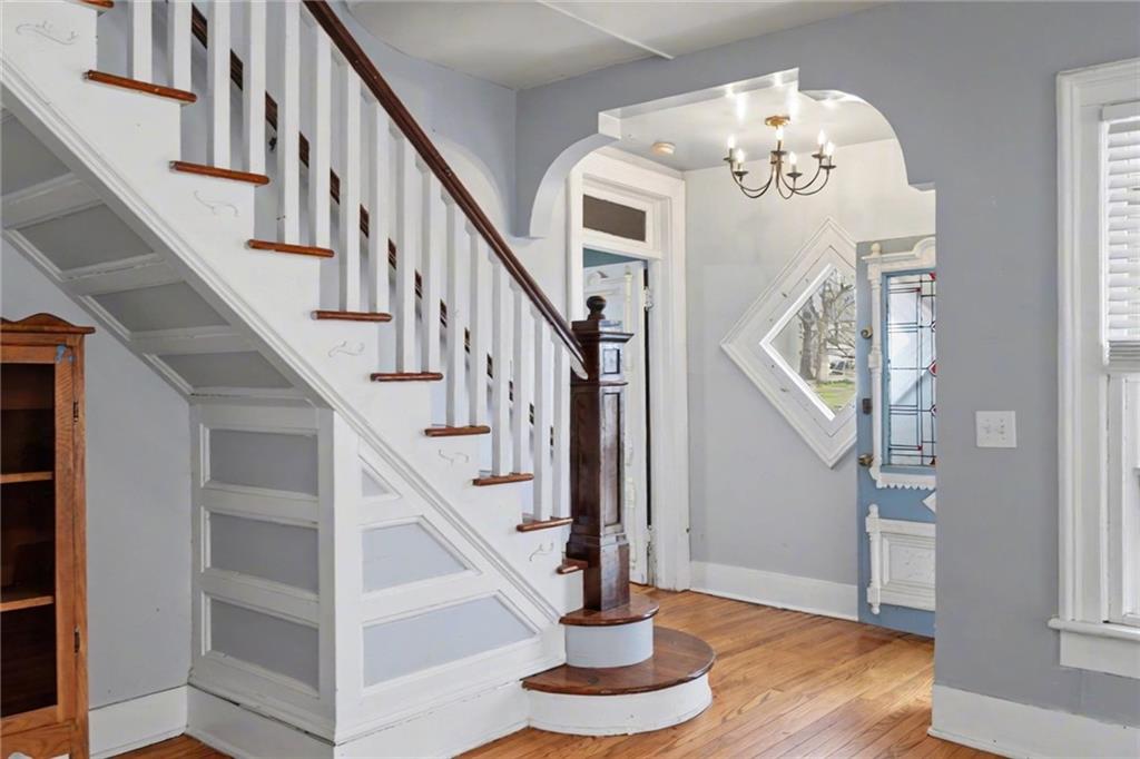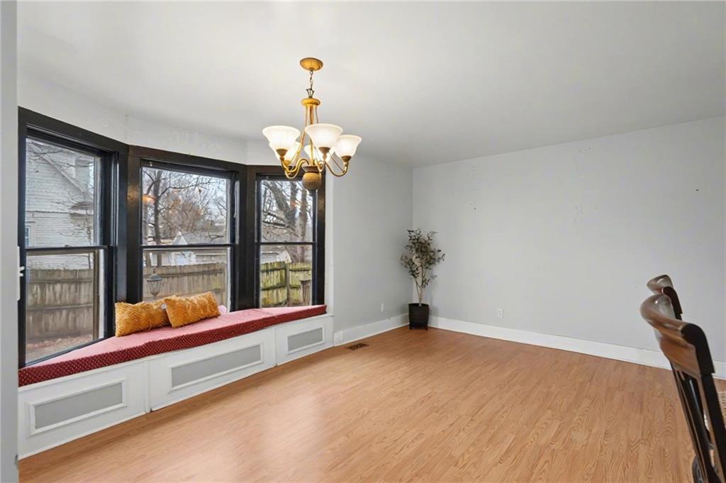 Step into this charming 1900's-built home with timeless character and thoughtful updates, including 4 spacious bedrooms and 2 bathrooms, located on a large corner lot. This home features original hardwood flooring and interior doors, along with beautiful trim details, tall ceilings, and large windows allowing for natural light throughout. The primary bedroom, full bath, and laundry/mud room are conveniently located on the main level, with an additional 3 spacious bedrooms and full bath, complete with beautiful claw foot tub, on the 2nd level. The kitchen has ample cabinets, gas range, some stainless-steel appliances, kitchen island, a detailed opening with bar stools and views into the dining room, perfect for entertaining. The large dining room has a beautiful bay window complete with cozy seating overlooking the backyard retreat. The large laundry/mud room with built-in ironing board, has additional cabinetry, space for a possible pantry, and an area perfect for crafting or a home office. Enjoy relaxing on the covered front porch sipping your morning coffee, or entertaining in the large backyard surrounded by a privacy fence, mature trees, the sounds of nature, and with space perfect for play, gardening, or outdoor gatherings. Let’s not forget the large shed for hobbies or storage, and the side carport for covered parking and additional outdoor storage. Located with easy access to Hwy 59 and Hwy 56 allowing for a short commute to Lawrence, Ottawa, KC and surrounding. AC 2 years old/Furnace approx 6 years old. PRICED under county appraised value, this adorable home is move-in ready and the perfect opportunity to bring your own personal touches.