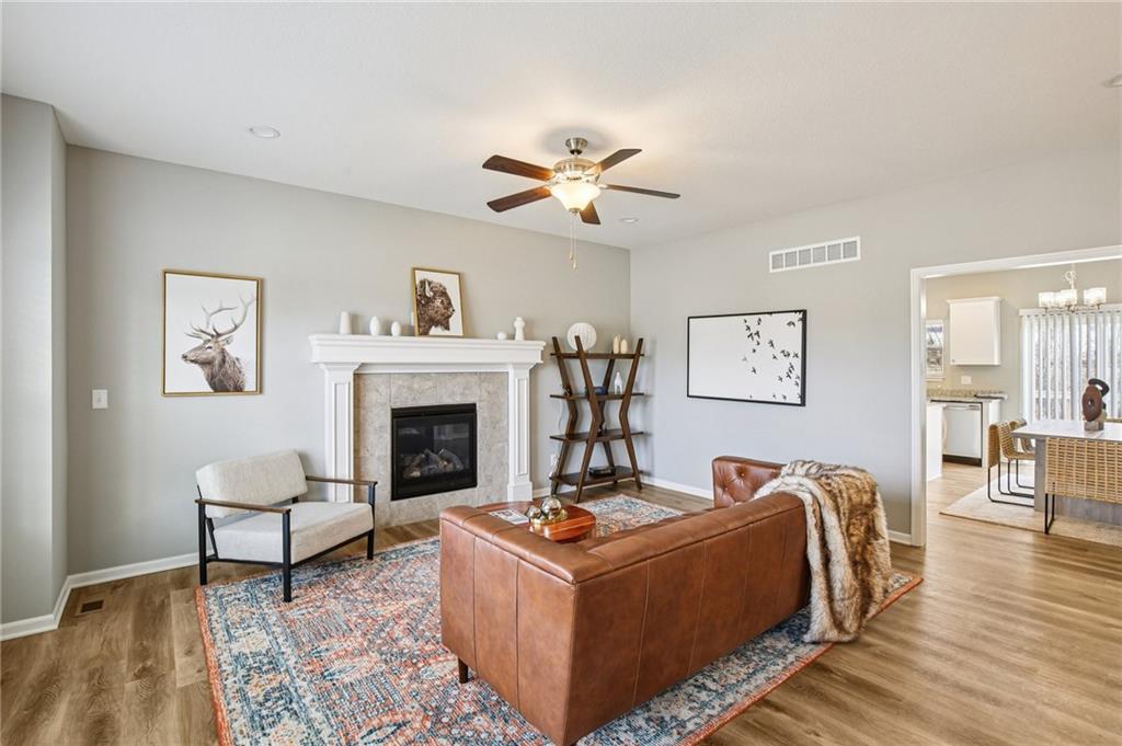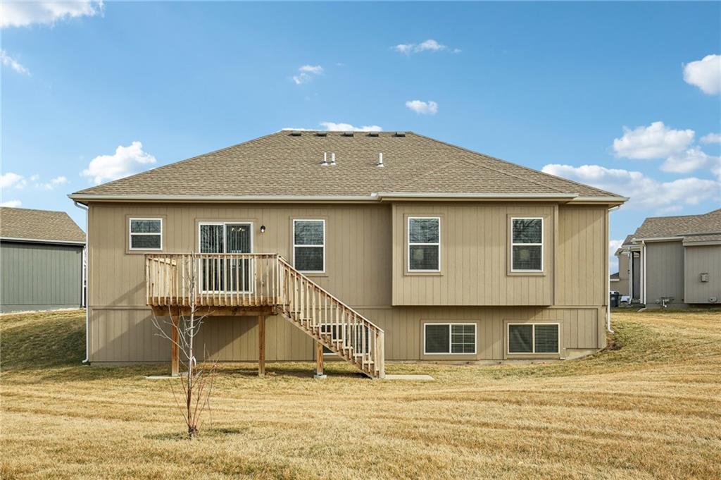 SELLER INCENTIVES OFFERED. PLEASE INQUIRE. Now available! This 4BR, 3BA, 2 car garage home is beautifully designed, combining modern style, functionality and warmth. Recently built in 2022, the Brookfield is an open concept floor plan with a welcoming entry that flows straight into the Great Room. The Great Room features a spacious sitting area that is offset by a mantled electric fireplace. The chef’s kitchen is a highly functional, spacious area offering white shaker cabinetry, granite countertops, smart stainless steel appliances with an L-shaped corner pantry. You will also find an elevated deck with stairs leading to the lower level. Scratch resistant luxury hard surface floors flow seamlessly through the home for an added sophisticated touch. The luxurious primary suite boasts a box vault ceiling, walk-in closet, with an en suite double vanity and spa-like walk-in shower with elegant finishes. Two additional bedrooms, perfect for an office, sleeping quarters or personal gym and a full bath all on the main level. The finished basement extends your living space with a secondary Great Room that enhances the home's flexibility for entertaining, a cozy den or game room. The lower level is home to a coat closet, fourth bedroom with double door closet, full bath and an unfinished space perfect for an additional storage area that completes the home. This home is nestled in the Eagle Ridge neighborhood minutes from shopping, dining with quick access to I-70 for easy commuting ad located in the award winning Grain Valley school district. Part of a well-maintained HOA community with minimal fees.