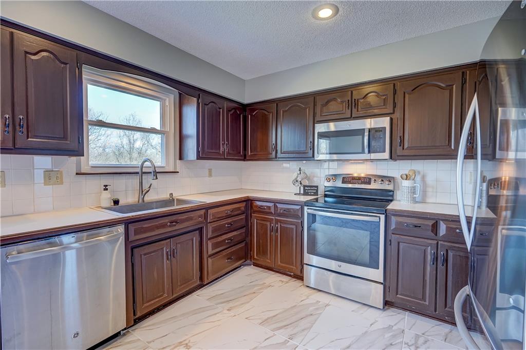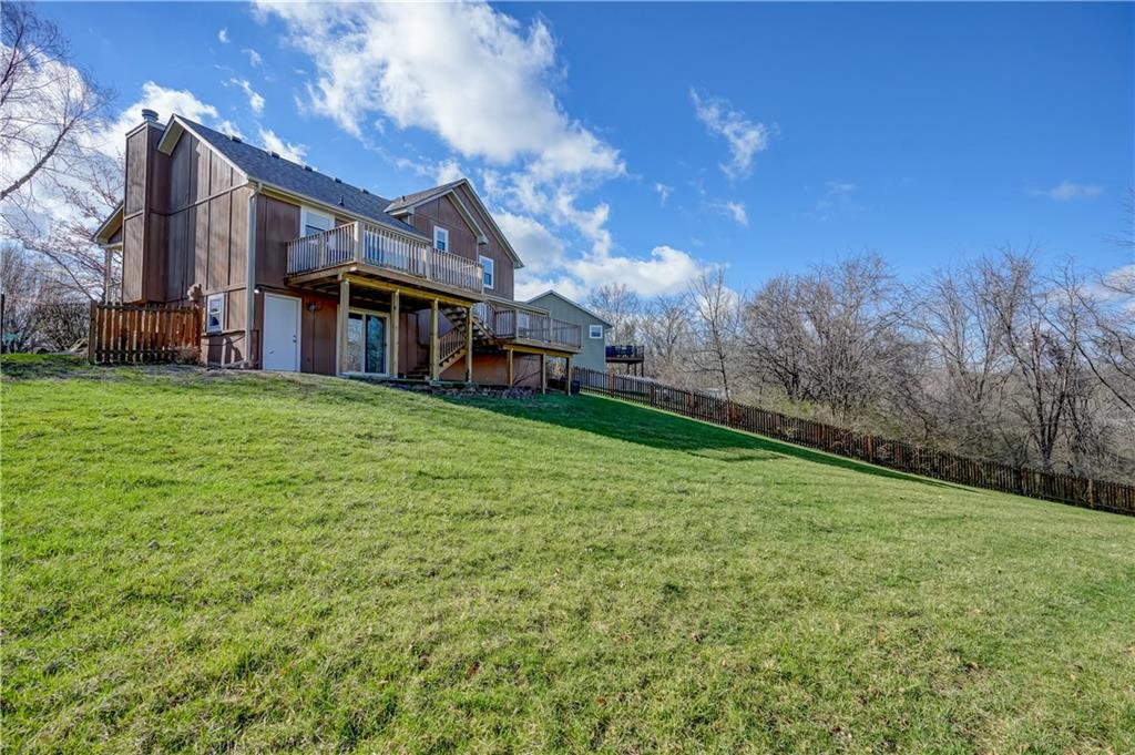 Welcome to 2501 NE Dale Hunter Trail! This 3 bedroom, 3 full bath home offers multiple living spaces and a layout that gives everyone room to spread out. Step inside from the covered front porch and you are greeted by soaring ceilings, a cozy fireplace, and a bay window that fills the main living area with natural light. The space flows comfortably into the dining area and kitchen. The kitchen features ceramic tile floors, stainless steel appliances that stay with the home, and sliding door access to the two tiered deck. Upstairs you will find all three bedrooms, including the primary suite with an en suite bathroom featuring double vanities and two closets. The hall bathroom is spacious and includes the laundry area conveniently tucked inside. Just a few steps down is the second living area with large windows that bring in great natural light. It works well as a family room, office space, or flexible living area depending on your needs. The lowest level offers a walkout basement with a third full bathroom, a third living area, and additional unfinished storage space. Outdoor living is just as enjoyable with a two tiered deck, patio space, and a large yard that backs to green space with no immediate neighbor behind you. All of this is tucked into a quiet cul de sac lot. If you have been looking for a home with space, flexibility, and a great Lee’s Summit location, this one is worth a look.