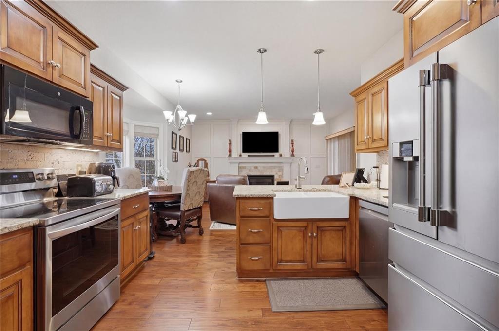 VILLAS OF AUBURNDALE! Experience luxury living in this 3-bedroom, 3-bath maintenance-provided patio home. This executive-style home features an open floor plan with tall ceilings and an abundance of natural light. The eat-in kitchen features stunning wood cabinets, granite countertops, and a walk-in pantry and is open to the hearth room with a stunning fireplace. Step onto the covered deck and enjoy your morning coffee. At the end of the day, retreat to your spacious primary suite, which offers a completely renovated bathroom, heated tile flooring, and a zero-entry shower, for the ultimate level of comfort. The finished lower level is an entertainer's dream, with a wet bar area, open living space (even a Murphy bed for extra guests!) Perfectly situated in a prime area west of Liberty, this property is convenient to several major highways, and just minutes from shopping and dining. The location can't be beat!