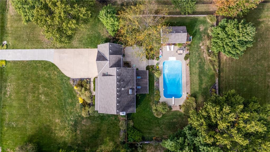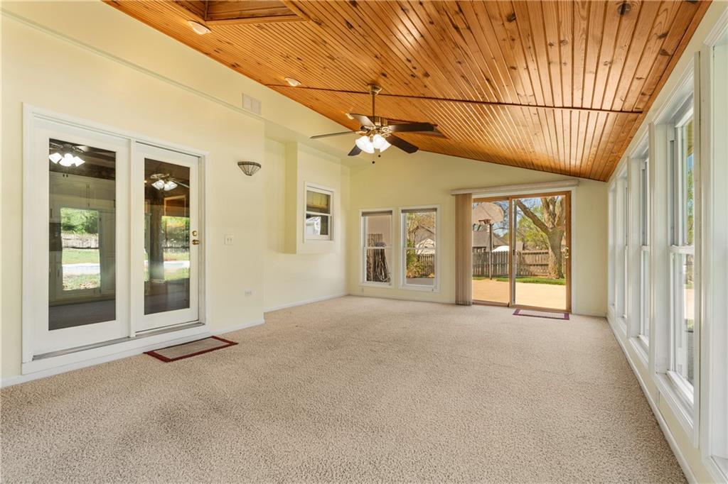 Tucked away in the desirable Harmony South neighborhood, this classic Colonial-style home offers a rare blend of space, comfort, and a peaceful one-acre setting. The main floor features a traditional layout with a formal dining room and a dedicated home office with built-ins just off the entry. The living room is warm and inviting with a bay window, brick fireplace, and custom built-ins, creating a perfect place to gather. The kitchen is designed with functionality in mind, offering abundant cabinetry, generous counter space, and granite countertops for everyday living and entertaining. Upstairs, the primary suite provides a private retreat with tray ceilings, a separate sitting area, and an ensuite bath complete with double vanities, vaulted ceilings, a soaking tub, separate shower, and skylight. Additional bedrooms are comfortably sized and offer flexibility for family or guests. The finished basement expands the living space and can easily serve as a recreation room, workout area, hobby space, or media room. A standout feature of the home is the bright all-weather porch, surrounded by windows and filled with natural light, making it the perfect spot to relax, watch the seasons change, or enjoy game days. The backyard is truly special, featuring an oversized saltwater pool, mature landscaping, fruit trees, and grapevines that produce annually. A patio extends the outdoor living space, and a convenient shed near the pool provides storage for equipment and supplies. Set in a quiet, established community known for its friendly atmosphere, this home also offers exceptional access to everything South Overland Park has to offer, including parks, shopping, healthcare, highways, and the Arboretum, along with highly regarded schools nearby. This property combines everyday comfort with a private, retreat-like setting in a location that makes daily life easy and enjoyable.