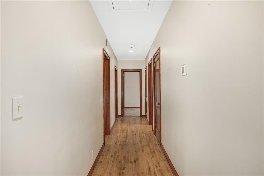 Step into timeless character and modern comfort in this beautifully preserved 1948 historic brick home offering 1,676 square feet of finished living space on the main floor - plus a stunning 17x8 sunroom with heated tile floors for year-round enjoyment. The main level features 3 bedrooms and 1 1/2 bathrooms, all accented by rich oak hardwood floors that carry warmth and charm throughout the home. The full bathroom is a true showpiece, showcasing a luxurious onyx walk-in shower and a matching onyx vanity countertop - elegant, durable, and unforgettable. The heart of the home presents a bright open-concept kitchen and living space, blending classic craftsmanship with modern upgrades. You'll love the oak cabinetry, high-end appliances, and European-import "New Lady's Dream" countertops that make a statement both in style and function. Main-floor laundry adds everyday convenience, and all appliances - including the stackable washer and dryer - remain with the property. Downstairs, the full unfinished basement provides exceptional potential and includes an additional laundry hookup, plus a shower and water closet. Major updates have already been completed, and the original blueprints, manuals, and paperwork have been meticulously preserved - a rare and valuable bonus for a home of this era. Outside, a 28x40 three-car detached garage (added in 1995) offers abundant space for vehicles, hobbies, or storage. Step onto your expansive 20x18 wooden deck and take in views of the beautifully landscaped .67-acre yard. The current owners have thoughtfully designed an outdoor oasis featuring mature Oak, Ash, Pecan, and Cherry trees, vibrant perennial flowers, and winding stone walkways that create the feeling of your own private secret garden. Historic charm. Thoughtful updates.