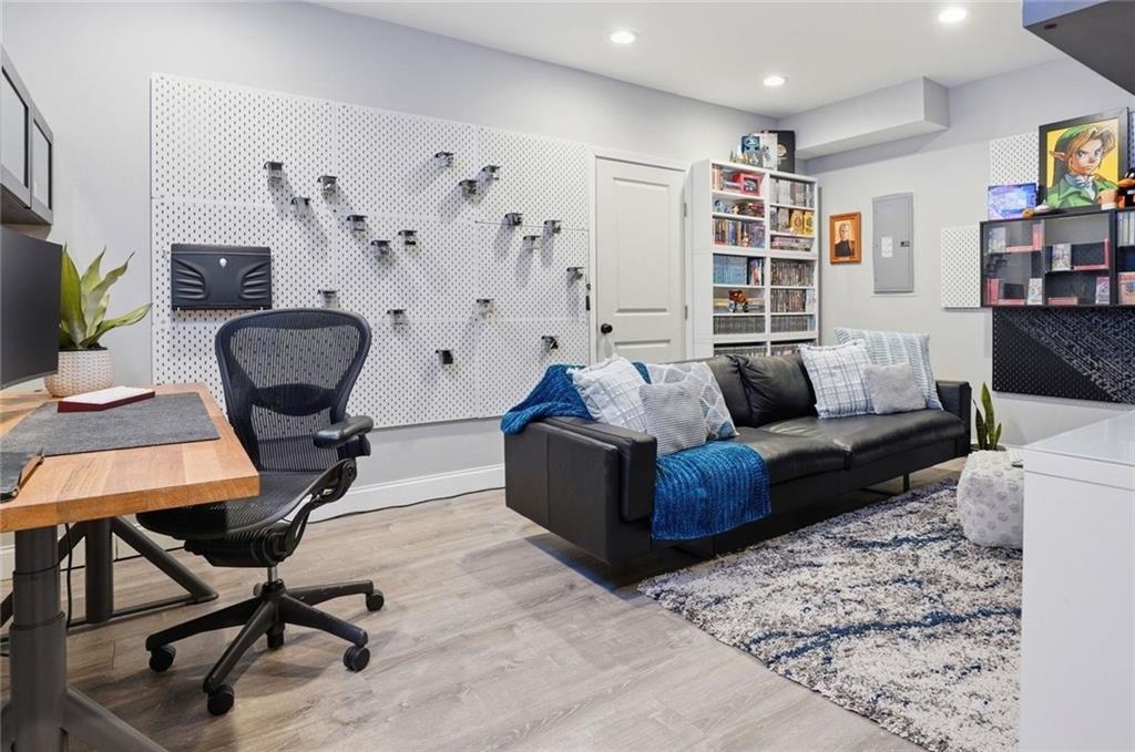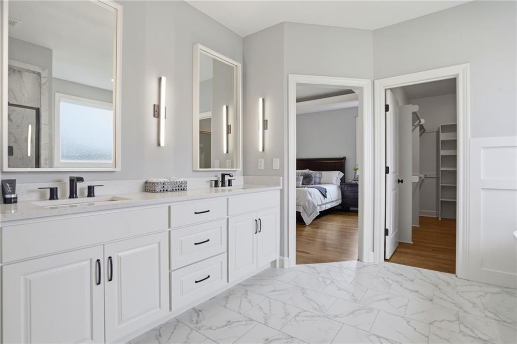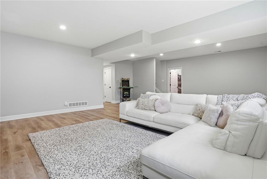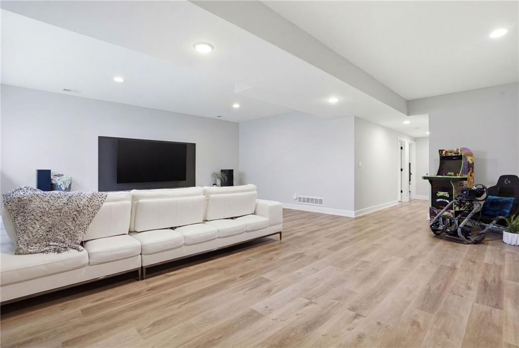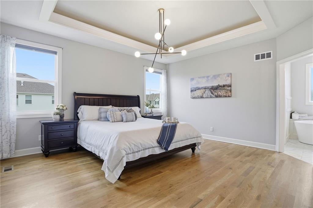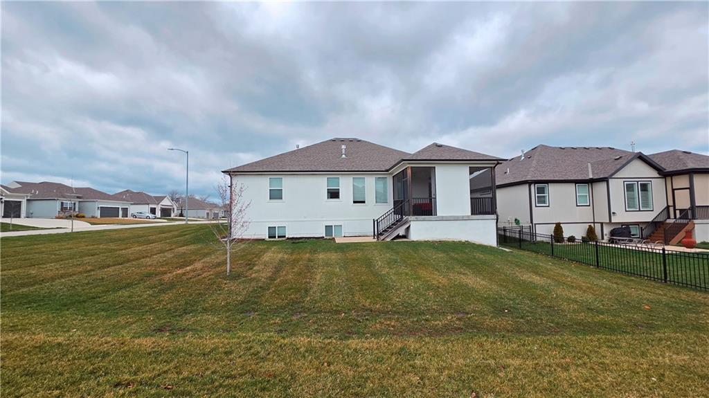 Welcome to your next neighborhood! Brookwood Farms is a vibrant, warm, welcoming, and social community with a pool, playground, fishing pond, and walking trails. Welcome to your next home! The home features Main-level Living, Hardwoods, Quartz Countertops Throughout, Upgraded Light Fixures, Ethernet in All Rooms, Hardwired Camera System, Covered-Screened-In Patio with Gas Fireplace, 220v Outlet for EV Charging Station, Built-In Ceiling Speakers in the FOUR-CAR Garage! This home is ideal for the remote worker, tech enthusiast, car collector, hobbyist, growing household, sports &/or outdoor enthusiast, or boat owner (Hillsdale Lake is just 16 minutes!). Inside this reverse 1.5 story home, find a spacious open floor plan designed for comfortable living and entertaining along with 4 bedrooms and 3 full bathrooms; providing plenty of room for you, your family and/or guests. Every detail considered! This home stands out from others with it's first impression curb appeal of the white & black modern farm-house style, to 4 frosted glass panel garage doors, to interior upgraded features that you will love - dramatic barrel-vault entry hall, arched openings, stainless steel double ovens and gas range, farmhouse style sink in large kitchen island, granite counter tops, shiplap feature wall framing the living room fireplace, boxed ceiling in primary bedroom, free-standing soaker tub in ensuite, walk-in shower, modern light fixtures, and soft backlighting throughout. Step outside to take-in sunrise over the neighborhood pond or the sunset as the day winds down, all from the screened-in covered deck with stone fireplace which creates a cozy outdoor living space you can use year-round. A rare combination of functional living space and an exceptional garage/workshop setup that’s increasingly hard to find. This home truly has it all in the fastest growing residential community of Spring Hill, Kansas!