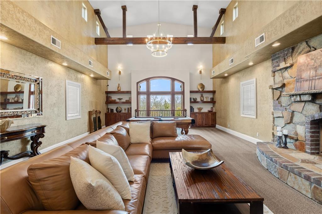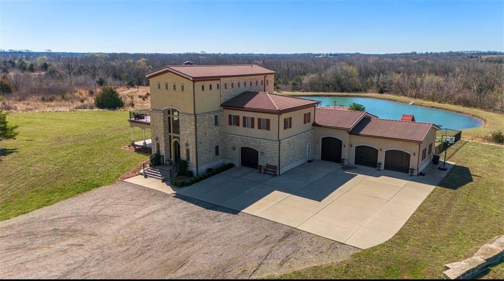 Now is the time to make this amazing opportunity a reality! This 8000+ sqft Mediterranean Masterpiece sits on 26+ acres of secluded land. It is located in Douglas County, Kansas. The pictures pale in comparison to what this luxurious home looks like up close and in person! Priced well under the professionally appraised value, this home is now destined to sell fast. Gated entry to a long winding drive leads you to this beautiful private country estate. It is outside the city yet still close to all the suburban amenities. Truly the best of both worlds. The owner will negotiate leaving the home fully furnished for move in ready buyers looking to transition and close quickly. Elegance is a word that best describes the interior of this home with its expansive rooms, gourmet kitchen, multiple fireplaces and huge living areas on every level of this one of a kind, private estate. It also boasts astonishing outdoor living from the decks to a large patio surrounding an amazing custom pool & hot tub which overlooks your very own private lake, complete with its own island. Wildlife abounds on this property, as you can watch the deer, turkey, fox, any many other species cross the secluded 26+ acre estate. There are wide-open meadows that could be fenced for pasture and other areas of surrounding land that can be mowed to enlarge those open meadows. This already outstanding property could be developed into an incredible Equine Estate. This secluded, sophisticated homestead in Edgerton Kansas will satisfy even the hardest to please, so make plans today to tour this one of a kind estate property. This property is within very close proximity of several surrounding cities in Kansas such as Overland Park, Lenexa, Olathe and Lawrence, home of the Jayhawks. The prestigious University in Lawrence, KS is within 25 minutes of this estate property. Don’t wait!