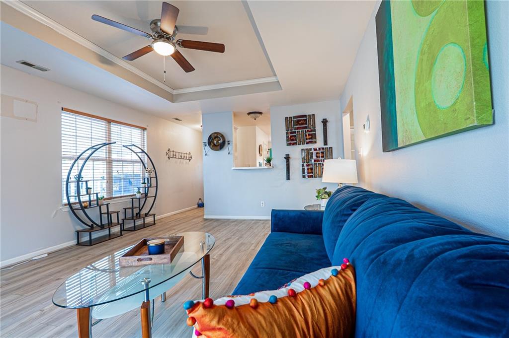 Well maintained 3 bed, 2 bath townhouse featuring a function layout with a bedroom and full bathroom on the main level. The home offers comfortable living spaces. Outside you will find a fully fenced backyard that backs to a wooded lot, providing privacy and a peaceful setting. Conveniently located near downtown Lawrence, with quick access to major highways. Being sold as is, inspections welcomed! Schedule your showing today!