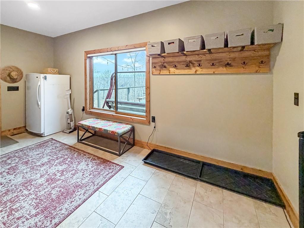 Indulge in waterfront living on approximately 5 serene acres at the 75 mile marker of Lake of the Ozarks. This custom-built home seamlessly blends luxury, Amish craftsmanship, and natural beauty, offering 4 bedrooms and 3.5 bathrooms designed for comfort and style. Very economical to heat and cool with geothermal system. Step into the open-concept main living area, where soaring vaulted wood ceilings with exposed beams, rich wood flooring, and walls of windows frame breathtaking views of the surrounding landscape. The gourmet kitchen is a chef’s dream, featuring a 9-foot island with seating, quartz countertops, custom cabinetry, mosaic tile backsplash, stainless steel appliances, and a walk-in pantry. Focus on work in your own home office or Relax in the sunroom or step outside to enjoy the expansive deck that spans the back of the home—perfect for entertaining—and a cozy firepit for relaxing evenings. The lower level hosts a finished game room with a regulation-size pool table included, two bedrooms, and a full bathroom, along with ample storage and a mechanical room housing a geothermal HVAC system, water heaters, and water filtration system. The property boasts approximately 110 feet of waterfront with an electric tram to a private two-slip covered dock equipped with boat lifts, a swim platform with Wet Steps, and a stainless steel fish cleaning station (Ameren permitted). Nestled in the gated Forbes Lake of the Ozarks Park community, enjoy privacy, road maintenance, and access to shared amenities—all while embracing the ultimate lakefront lifestyle.