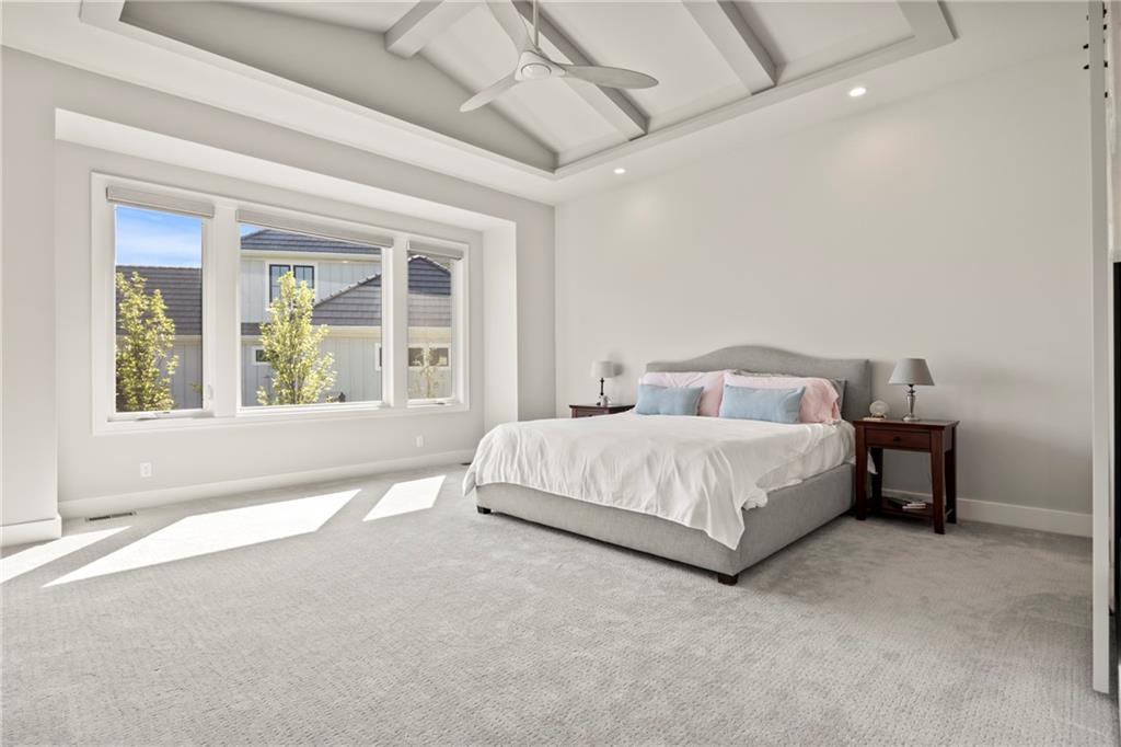Amazing one and a half story home with a full finished walkout basement in Mills Ranch ready for quick move-in. This nearly new, 3 year old Willis Custom Built home is a stunner with a spacious vaulted main floor living space, impressive curved staircase, arched doorway to the great room, unique 2nd bar, theater room, screened in lanai sun porch, walk in double shower with freestanding tub, huge 4 car split garage with high lift doors, dog wash, pocket office, premium sound system and smart tech package. So many unexpected extras in this home around every corner. This 1.5 Story floor plan features a main floor primary suite with luxurious spa bath with with white quartz and mini tiles. Must see! Upper level offers private spaces with loft, second laundry and two premium bedrooms loaded with extra features and upgraded baths. You'll love the fully finished walkout lower level with LVT flooring, movie room, wet bar and 4th bedroom. This upscale home sits on a corner lot with a side entry four car garage and a front circle drive. Beautiful landscaped and fully fenced unique backyard allows for you to access from the main level and walkout on the side. Move right in to this amazing home located in Mills Ranch with a new neighborhood pool, and easy access to the Johnson County walking trails and quick access to Highway 69. All the luxuries of a new home are already added including premium window coverings, fenced yard, water bottle filler, built in side-by-side refrigerator and premium sound system. Why build when you can move right into this award-winning Willis Custom Home. Blue Valley School District