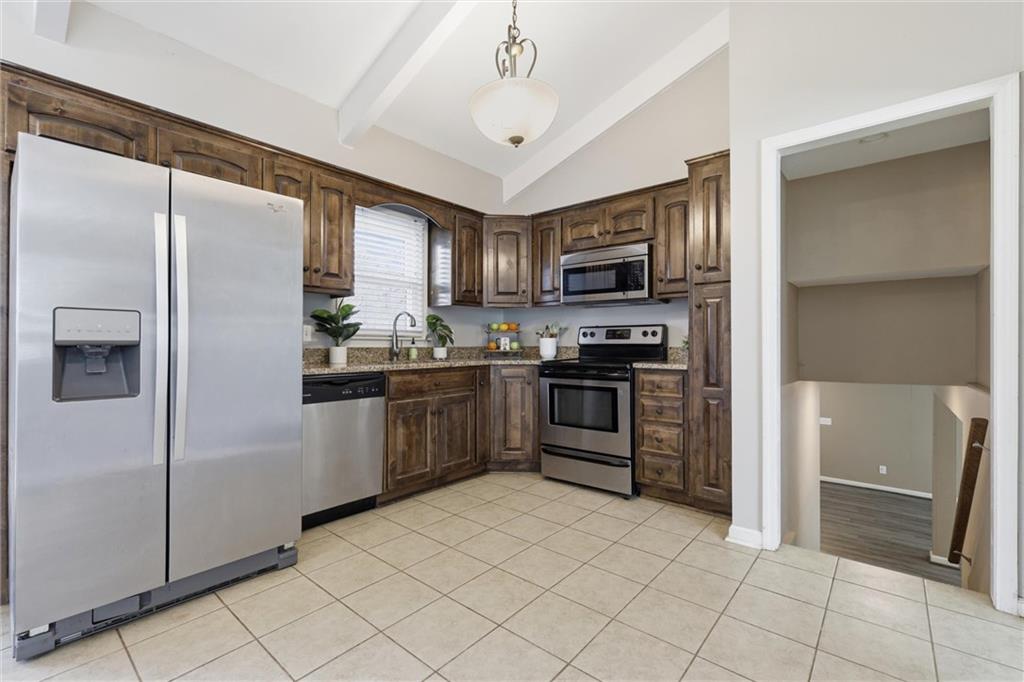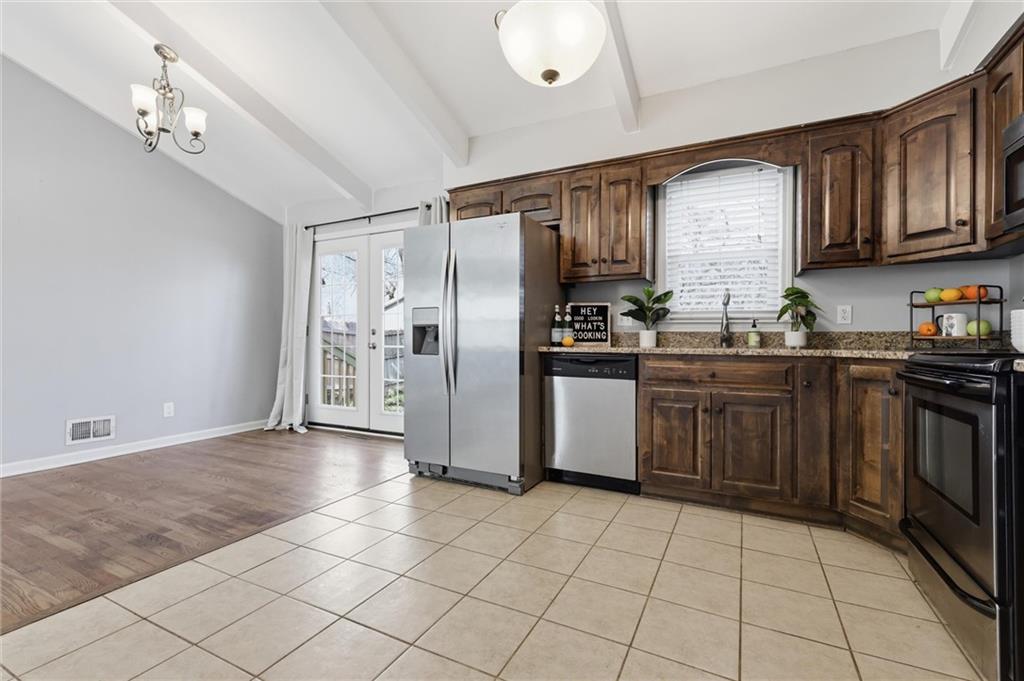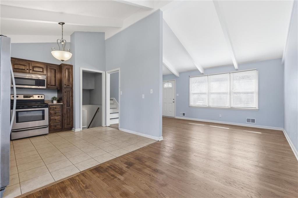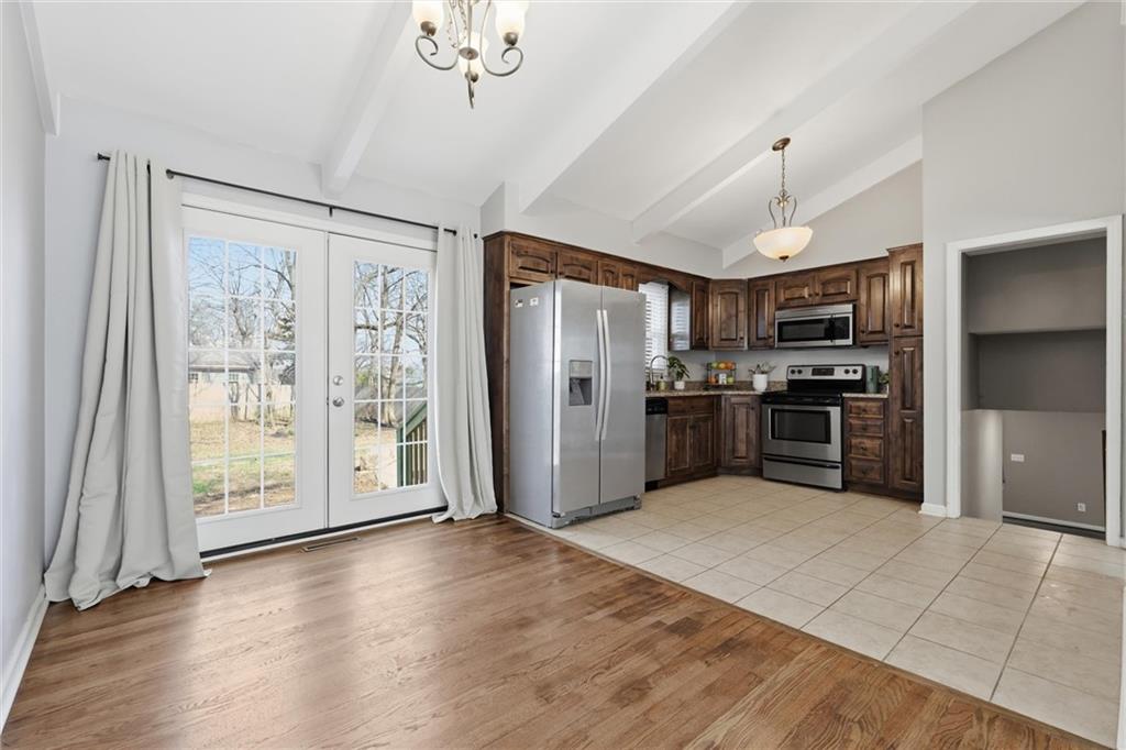 OFFER DEADLINE SET FOR 3PM, SATURDAY, MARCH 14TH. There's a lot to love about this side-split in Shawnee's Tomahawk Hills neighborhood, and the updates list alone will have you doing a double-take. Brand new roof with impact-resistant shingles, all-new windows, fresh siding, replaced driveway and retaining wall, furnace and A/C both just 2.5 years old. Someone did your homework for you. Step inside and the living room sets the tone immediately. Vaulted ceilings with exposed beams, rich hardwood floors, and an abundance of natural light give the main level an open, airy feel that's hard to manufacture. The layout flows naturally between living and dining, the kind of floor plan that just makes sense. The kitchen is ready to work. Dark stained cabinetry, granite countertops, and stainless appliances including refrigerator, microwave, dishwasher, and disposal. A sliding glass door keeps the outdoors close, so the dinner-to-patio transition happens in about four steps. Highly recommend. Upstairs you'll find the primary bedroom plus two additional bedrooms, all with hardwood floors, and a full bath. A second full bath on the lower level handles guests who overstay their welcome. You know the ones. The finished basement delivers a spacious family room with fireplace and brand new LVP flooring, perfect for movie nights or pretending you'll work out down here. Out back, a generous concrete patio with mature trees is ready for string lights, Adirondack chairs, and your beverage of choice. Sunday morning coffee or Friday night fire pit, this outdoor space turns a house into the house everyone wants to hang out at. Come take a look and see why this one feels like home the moment you walk in.