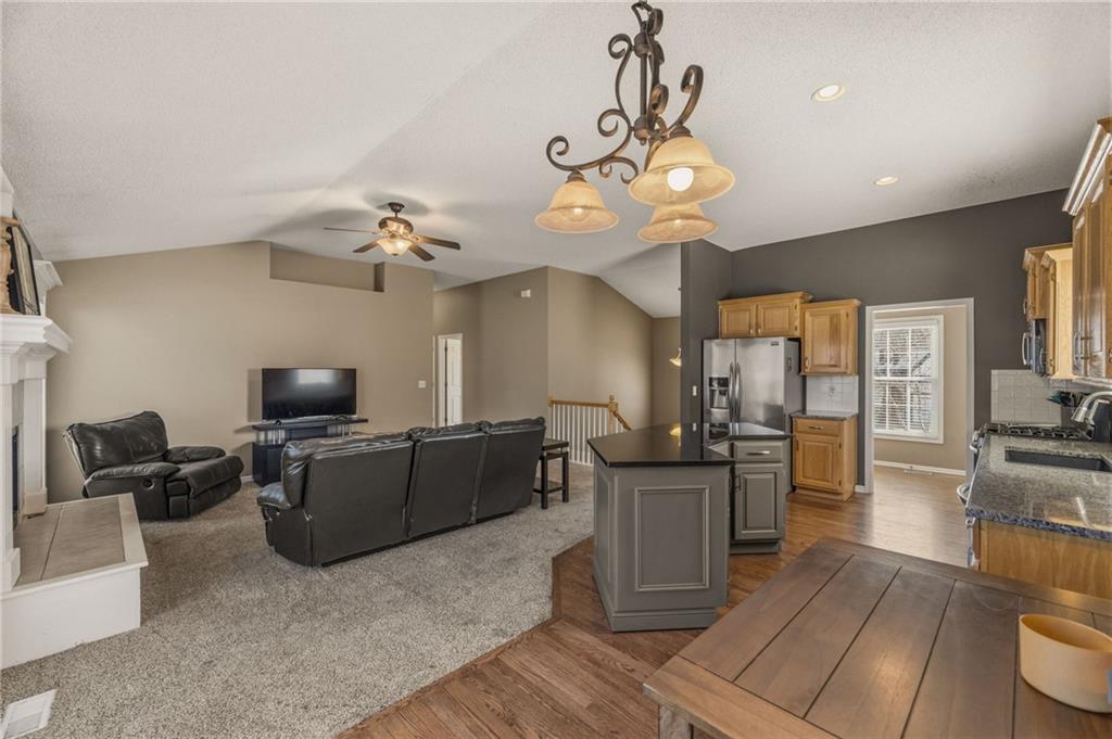 Move-In Ready gem with unbeatable curb appeal on a cul-de-sac in the coveted Lackman Park Place neighborhood of Olathe! Enjoy 3 bedrooms on the main floor, including the oversized primary suite. The spacious kitchen features granite countertops, a large, movable island, updated appliances, gas range, and pantry. Rest easy with a newer roof (2022- transferable warranty), newer gutters (2022) and a fully repainted exterior (2023)! Refrigerator, washer and dryer all stay with the property! The fully finished, carpeted daylight basement includes a 2nd living room, additional bedroom and updated half bath. Relax on the wood deck overlooking a large, flat backyard. The extra-deep garage includes built-in cabinets and workbenches with added electrical to help you accomplish any task. Minutes away from lovely Black Bob Park, Hy-Vee and award winning Olathe schools. No HOA in the neighborhood. Book your showing today. At this price, and this location, you'll want to see it in person!
