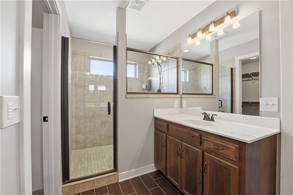 You’ll find modern luxury & unbeatable convenience in this move-in ready 4 bed, 3 ½ bath home packed with extra features. Experience the perfect blend of high-tech sustainability and resort-style living. Ideally situated on a quiet dead-end street in the highly rated Park Hill School District, this home is a commuter’s dream. Reach downtown in just 10 minutes and KCI in 15 min. The interior is designed for both grand entertaining and quiet comfort. The gourmet kitchen features a large center island, granite counters, gas cooktop and walk-in pantry for lots of storage. The spacious primary suite features a spa-like ensuite bath and direct access to the deck and play area. The flexible lower level features a full private suite with its own private bath—ideal for a home office or long-term guests. The outdoor living space is a true year-round retreat with a massive composite deck that spans the back of the house, featuring a covered section and a built-in natural gas grill with easy access to the kitchen. Below the deck is a private, stamped concrete patio with a "dry ceiling" system. Stay comfortable and dry in any season with a gas heater, outdoor TV, and a relaxing hot tub. The patio adjoins the large family room with fireplace, a half bath and convenient laundry room. All bedrooms have ceiling fans and generous closet space. More storage in the dedicated storage room accessed from the patio for all your seasonal gear and tools plus an additional storage room in the basement. Extensive professional landscaping includes durable poured concrete edging. The oversized 3-Car garage has two garage door openers & insulated steel doors. It is prepped for your EV charger and even more storage. Washer and dryer stay, and the solar panels are fully paid off, offering immediate energy savings. Enjoy the community amenities of this vibrant neighborhood with a huge community pool and a playground. Nearby is access to the Line Creek Trail system. This home checks all the boxes!