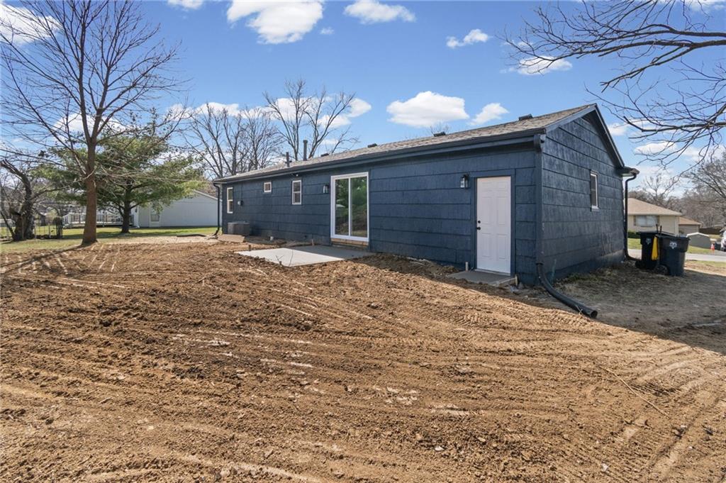 ABSOLUTE STUNNER!!! 3 bedroom, 1 bath, 1 car garage in sought after 64155 zip code. NEW roof, NEW appliances, NEW counter tops, NEW cabinets, NEW patio, NEW driveway, NEW garage floor, NEW paint and so much more. Large backyard with an awesome outbuilding for extra storage. So much to offer at this price. This one won't last long!