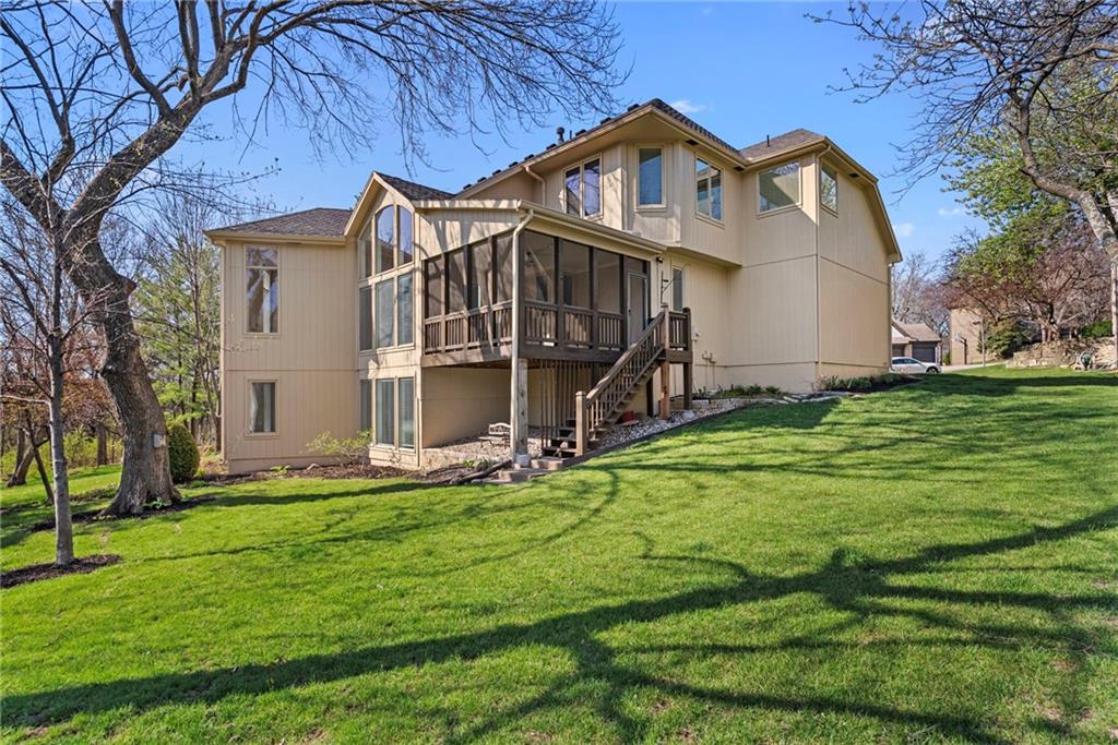 Nestled at the end of a quiet cul-de-sac in the highly sought-after golf community of Falcon Ridge, this impressive two-story home offers space, privacy, and beautiful natural surroundings. Featuring 4 bedrooms, 4.5 bathrooms, and a 3-car garage across approximately 4,500 square feet, the home backs to a serene greenspace with a picturesque dry rock creek. Walls of windows line the back of the home, filling the living areas with natural light and showcasing peaceful, tree-filled views across an expansive lawn. The main level offers both a deck and a screened-in porch—perfect for enjoying the outdoors in comfort. The spacious layout includes an enormous primary suite with an equally expansive walk-in closet, along with a nicely updated primary bath. Hardwood floors have been added to the dining room and study, and the interior has been refreshed with newer paint throughout in recent years. The finished walk-out basement (2016) provides additional living and entertaining space, complete with a built-in bar and access to a patio—ideal for gatherings both inside and out. Additional updates include a lifetime hail-resistant roof (2018) and a completely overhauled irrigation system (2025), offering added value and peace of mind. Located in one of the area’s most desirable communities, this home combines generous living spaces, thoughtful updates, and a tranquil setting just minutes from everything Falcon Ridge has to offer.