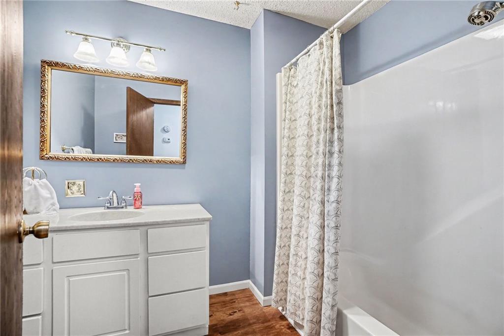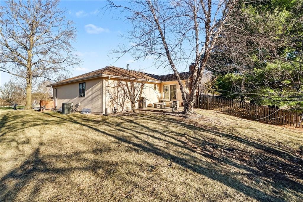 Cul-de-sac ranch • 0.43-acre lot • Main-level living with full basement - Savannah School District. Brick ranch-style home on a 0.43-acre lot at the end of a cul-de-sac in Savannah School District, offering true main-level living. The main floor includes three large bedrooms, and the primary en suite bathroom has a new walk-in shower. Entertaining is a dream in the open-concept layout connecting the renovated kitchen, dining area, and living room. The vaulted-ceiling living room, with a wood-burning fireplace, is surrounded by large windows and two French doors bringing natural light into the main living spaces. Recent updates include new carpet, fresh interior paint, a renovated kitchen, and new primary bedroom shower The lower level features a conforming fourth bedroom with a walkout door, a full bathroom complete with a jacuzzi tub, and a spacious family room for hours of fun. Approximately 800 square feet of unfinished basement space provides room for storage or future finishing. The home includes a two-car attached garage and a patio located just outside the main living area to enjoy a cup of coffee or viewing nature. The property backs to green space and natural surroundings while offering convenient access to Highway 71 and nearby shopping and services.