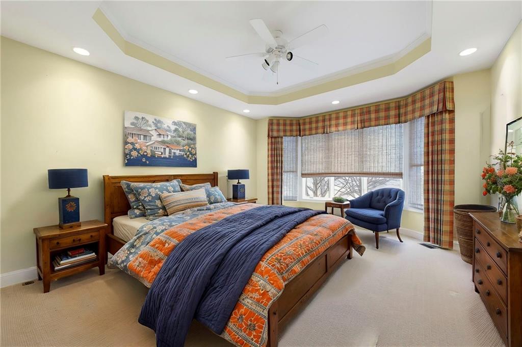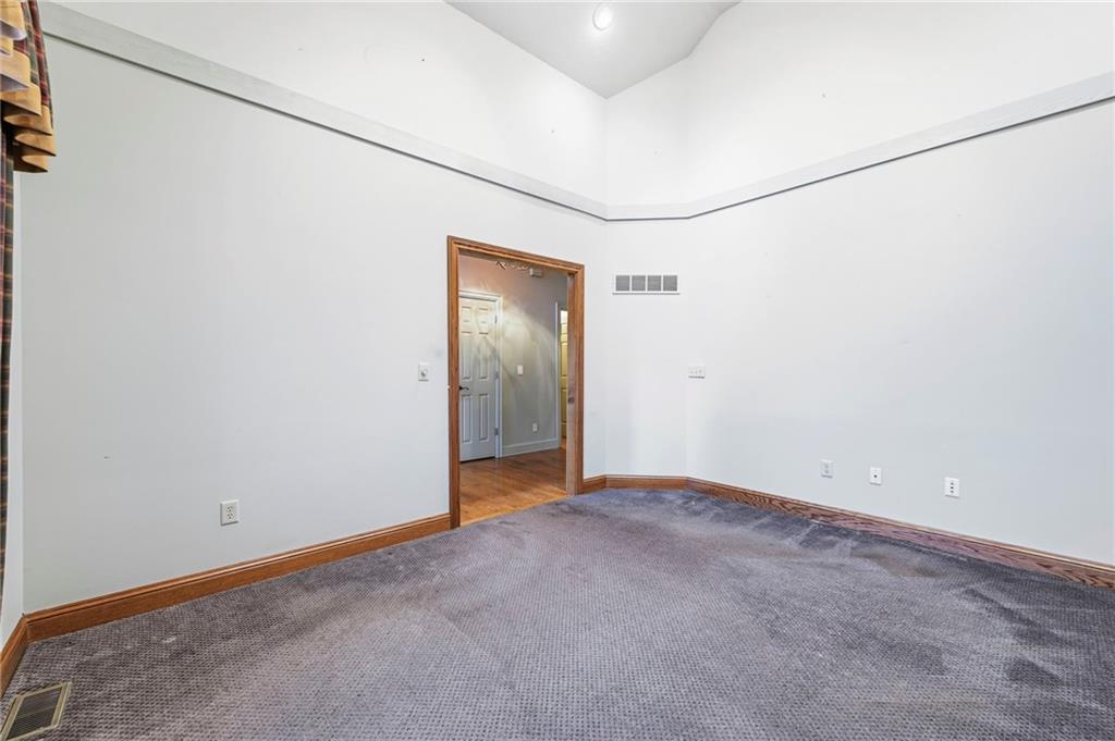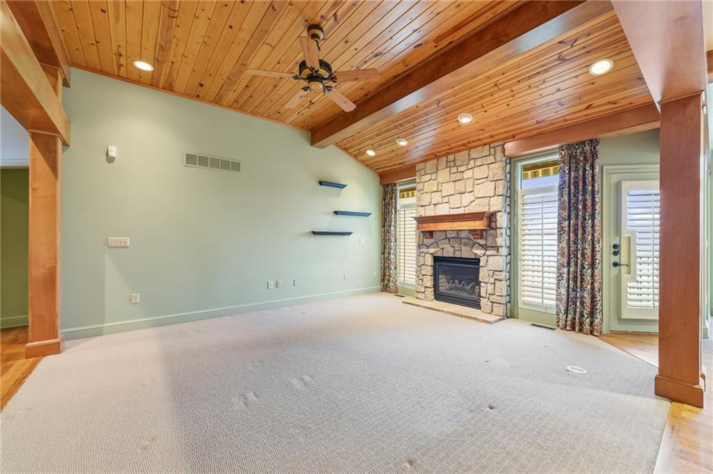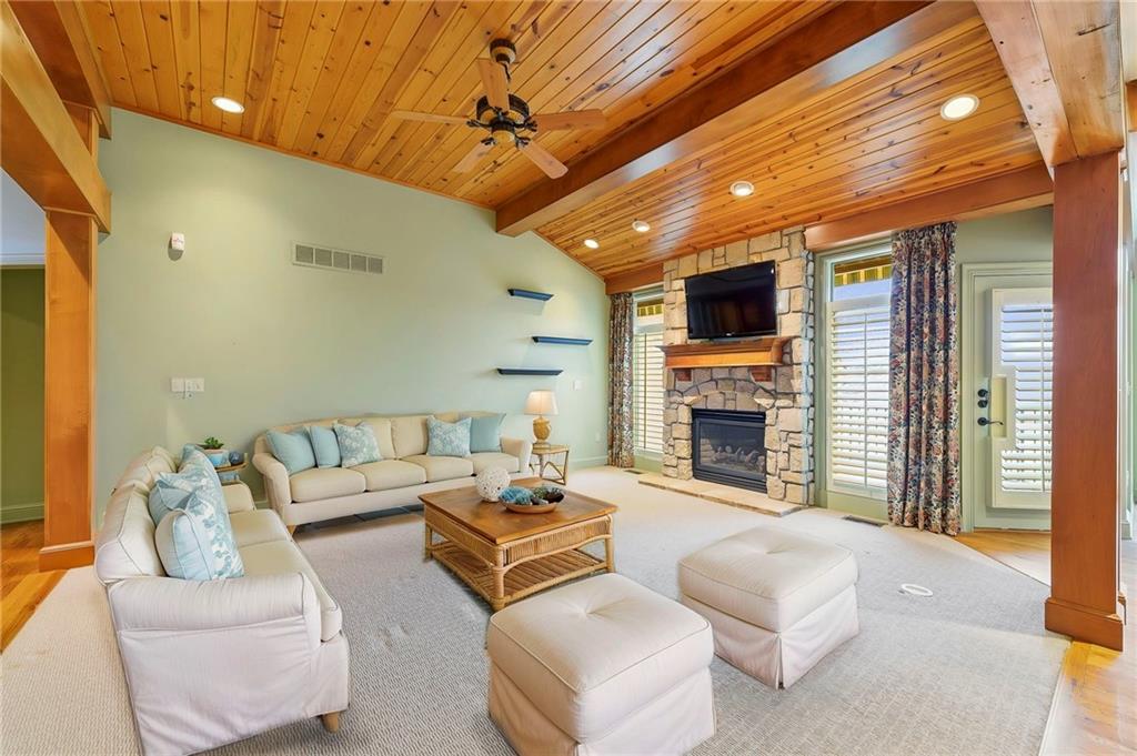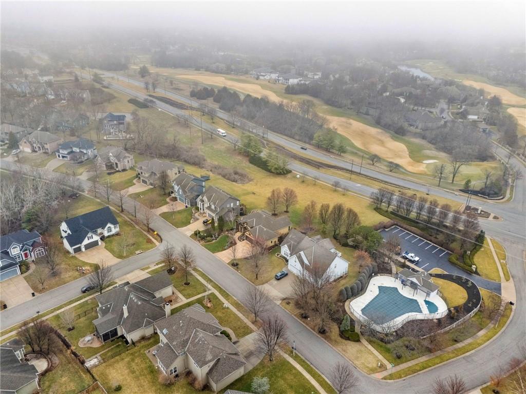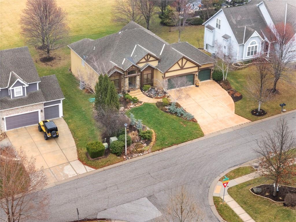 Stunning Custom Reverse 1.5-Story in Highland Crest with Falcon Valley Golf Course Views This beautifully custom designed and built reverse 1.5-story home in sought-after Highland Crest offers privacy, exceptional craftsmanship, and scenic views of Falcon Valley Golf Course. The professionally landscaped lot features mature trees, manicured shrubs, raised garden beds, and a tranquil waterfall water feature. With no neighbors behind, the property backs to open space, creating a peaceful and private outdoor setting. The striking all-stucco exterior with elegant stone accents provides outstanding curb appeal. Inside, the thoughtfully designed floor plan showcases rich hardwood floors, exposed wood beams, and tongue-and-groove wood ceilings that add warmth and character throughout the main living spaces. The chef’s kitchen features beautiful stained cabinetry, granite countertops, stainless steel appliances, a spacious dining area, and a large walk-in pantry—perfect for both everyday living and entertaining. A private office provides a quiet work-from-home space. The main-level primary suite offers a relaxing retreat with a large walk-in shower with seamless glass and an expansive walk-in closet with custom built-ins. A convenient main-floor laundry room completes the level. The daylight lower level is ideal for entertaining and recreation, featuring a spacious rec room with luxury vinyl flooring, a dedicated area for a pool table, two additional bedrooms, and a full bathroom. There is also abundant storage space, along with updated HVAC and a whole-home water filtration system. Step outside to enjoy the newer composite deck and additional patio overlooking the large, treed backyard that backs to open space. Located within easy walking distance to the neighborhood pool and just minutes from Lenexa City Center, shopping, dining, and highways. Situated in the highly regarded Olathe School District.