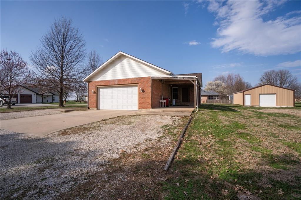 Beautiful brick home on 2 acres with a full unfinished basement offering plenty of room for storage or future living space. New roof, all new flooring throughout, all new kitchen cabinets, and new Corian countertops in the kitchen, plus Corian vanity tops in the bathrooms make this home move-in ready. Enjoy relaxing on the covered front porch or covered back patio, perfect for entertaining or quiet evenings outdoors. The property also features a large shop with plenty of room for hobbies, projects, or additional storage. The perfect blend of space and convenience — enjoy the feel of acreage while still living in town.