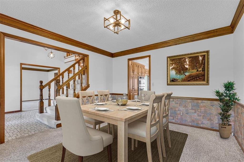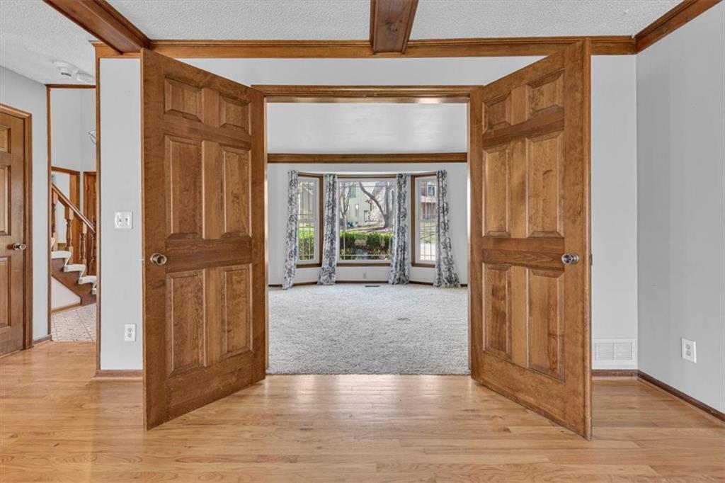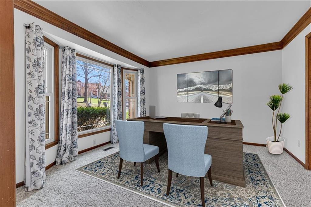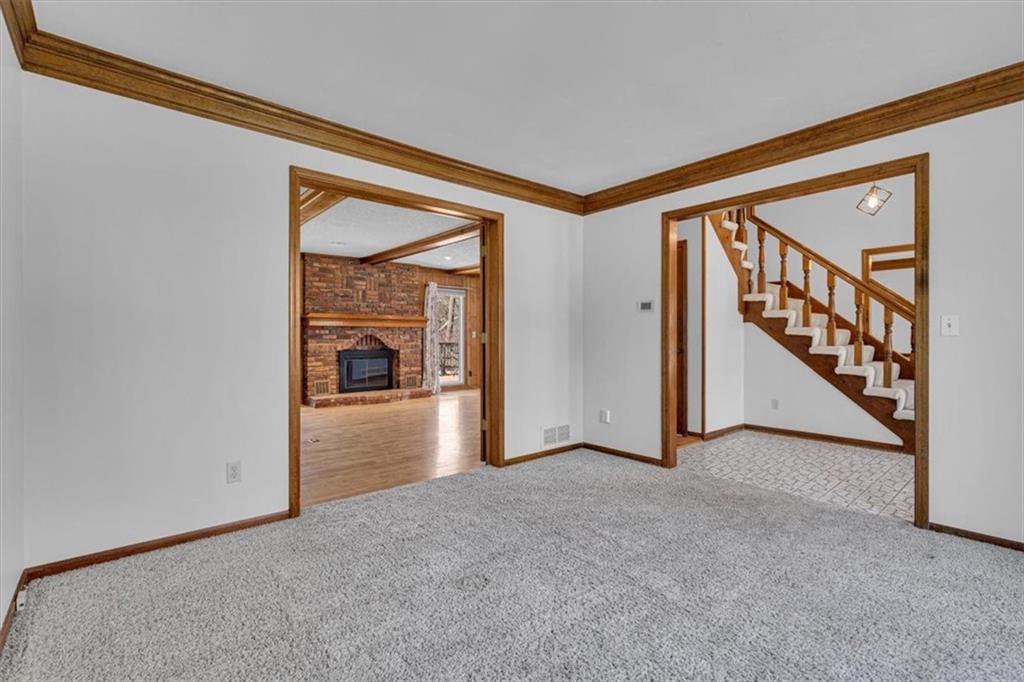 COMING SOON! Showings begin Saturday, March 14. Spacious Tudor-style 4-bedroom home in the desirable CLAYMONT NORTH subdivision. This home offers exceptional square footage and timeless character throughout. A charming brick walkway leads to a new front door and a grand entry with two-story ceilings. The main level features wood panel doors and trim, exposed wood beams in the great room, mostly newer windows, main-floor laundry, a guest bath, eat-in kitchen, and a formal dining room. Upstairs includes three bedrooms with generous closet space, a recently remodeled full bathroom, and a large primary suite featuring a private sitting room or office with fireplace and built-ins. The finished lower level family room provides additional living and entertaining space. Outdoor living includes a large deck overlooking a beautifully treed lot, perfect for relaxing or entertaining. Located in a well-established neighborhood with frequent wildlife sightings and convenient access to nearby amenities. Don’t miss the opportunity to own this spacious home at an incredible value.
