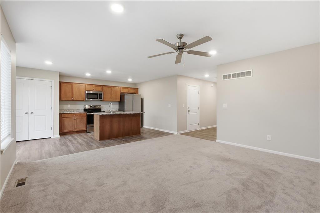 Welcome home to this beautifully maintained 3-bedroom, 2.5-bath split-entry home located in the desirable Setter’s Pointe community in Peculiar. Built in 2021, this move-in ready home offers modern finishes, functional living space, and a layout designed for both everyday comfort and entertaining. The open-concept main level features a bright and inviting living area that flows seamlessly into the kitchen and dining space. The kitchen is a standout with granite countertops, stainless steel appliances, a large center island with seating, and a walk-in pantry, making it perfect for cooking, gathering, and hosting. The spacious primary suite offers a private retreat with an en-suite bath featuring a double vanity and walk-in shower. Two additional bedrooms and a full bath provide plenty of space for family, guests, or a home office. Downstairs, the finished lower-level family room with half bath adds flexible living space ideal for movie nights, a playroom, or workout area. Step outside to the back deck overlooking the large backyard, perfect for summer BBQs, relaxing evenings, or entertaining friends and family. Additional highlights include luxury vinyl plank flooring, main-level laundry, a 2-car attached garage, and a generous lot. Conveniently located in the Raymore-Peculiar School District with easy access to shopping, dining, and major highways. Don’t miss the opportunity to make this beautiful home yours!