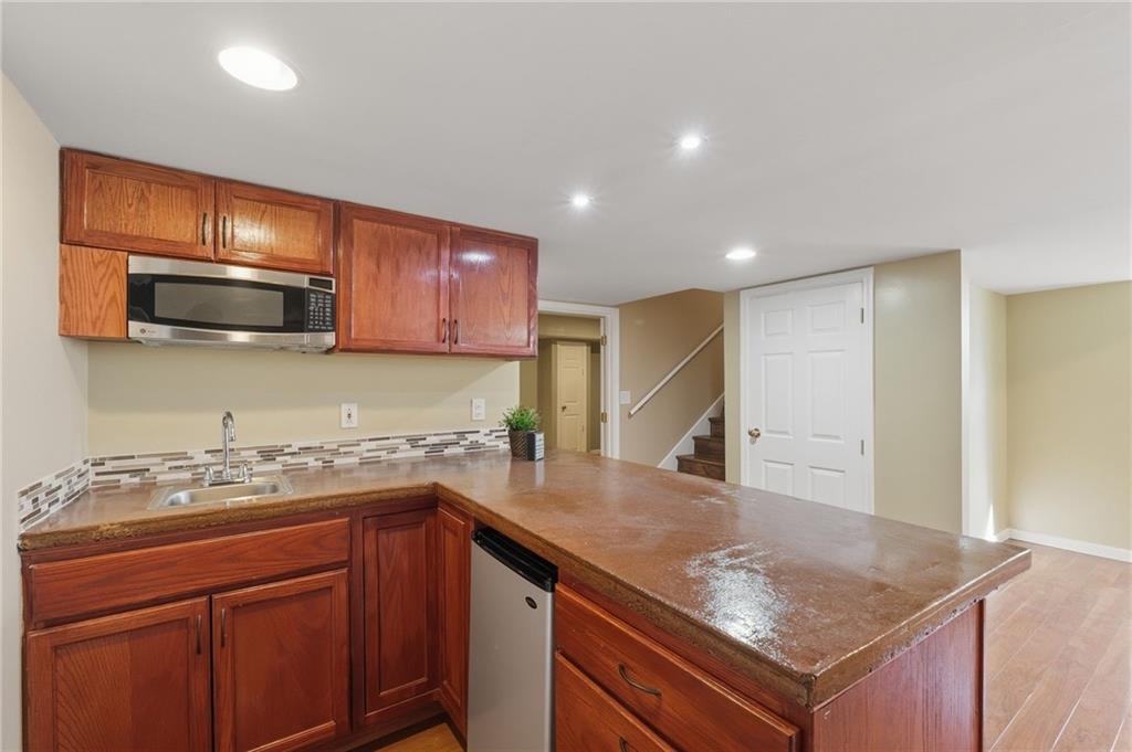 STUNNING home in Blue Valley School District with THOUSANDS IN UPGRADES!! New HVAC, humidifier, and hot water heater (2025), interior paint, new roof replaced in 2022 with added ventilation, exterior paint (2022), and new sump pump (2024). This updated 4-bedroom home with a 5th non-conforming bedroom/office offers major recent upgrades and a fantastic cul-de-sac location right next to the neighborhood pool. Interior remodeled with engineered hardwoods on the main level, stained kitchen cabinets, granite counters, marble backsplash, and pull-out pantry shelving. Stove and dishwasher only 2 years old. Basement features a full bath, family room with large window, bar area with mini fridge & microwave, surround sound speakers, and a 5th non-conforming bedroom/office. Magical BACKYARD OASIS added in 2024 with a paver patio, pergola (bamboo + clear covering), lighting, TV, and stone firepit, full-yard irrigation including beds and patio pots, raised garden beds, and mature fruit trees (apple and peach). Additional features include a big master with vaulted ceilings and huge primary walk-in closet, 200-amp electrical panel, and newer garage door openers. Water filtration and water alkalizing system!! This move-in ready home has all the big-ticket updates already done and a one-of-a-kind backyard built for relaxing or entertaining! Run to make it yours!!