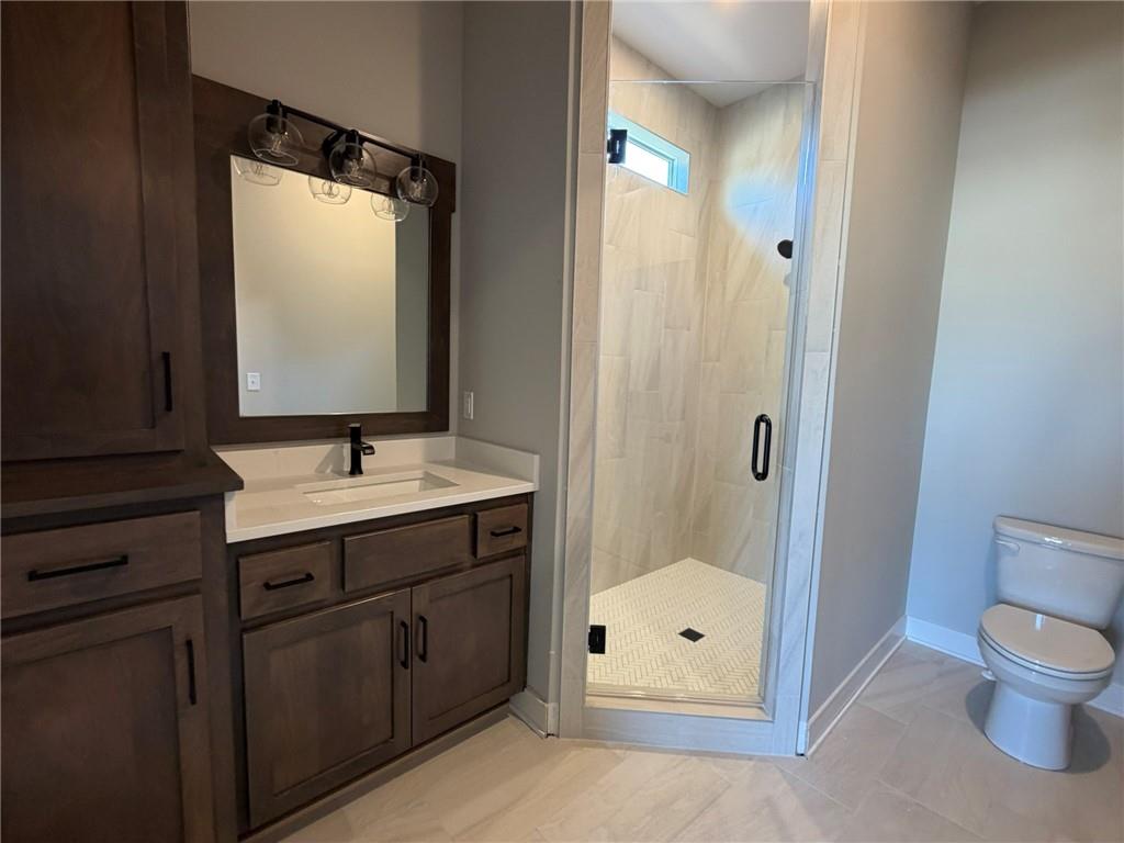 Ready mid-April and located in the Maintenance Provided section of Kensington Farms, this popular Sonoma Reverse 1.5-story floorplan is currently in our Quality Assurance stage—pardon our dust as finishing touches are completed! The thoughtfully designed main level features two primary bedrooms, each with a private ensuite, making it perfect for guests or multigenerational living. The main primary suite includes a zero-entry shower, spacious walk-in closet with custom shelving and built-in dresser and convenient access to the laundry room. The heart of the home is the beautifully designed kitchen with stained cabinets, offering abundant storage and counter space and flowing seamlessly into the dining area and great room. Here you’ll find 10-foot ceilings, fireplace, and a stained coffered ceiling. Durable upgraded laminate flooring (Revwood) runs throughout the main level for both style and easy maintenance. Step outside to enjoy the oversized covered deck overlooking the backyard—perfect for relaxing or entertaining. The finished lower level expands your living space with an oversized rec room, a wall wet bar, two generous bedrooms, a full bath, and 500+ sq. ft. of unfinished space ideal for a gym, workshop, or additional storage. Additional upgrades include: High-efficiency furnace, GE appliances, under-cabinet lighting, Low-maintenance decking, garage door openers included. BUY WITH PEACE OF MIND, the convenience of new construction backed by a 2-10 Home Warranty, offering 10 year structural, 2 year mechanical, 1 year workmanship Located in the maintenance-provided section of Kensington Farms, homeowners enjoy worry-free living that include weekly lawn mowing, a 6-step fertilizer program, annual grub treatment, spring re-mulch and cleanup, and snow removal for 2"+, all for $160/month. Neighborhood amenities include a pool, playground, and greenspace, with easy access to Downtown Lee’s Summit, Summit Fair, dining, and shopping.