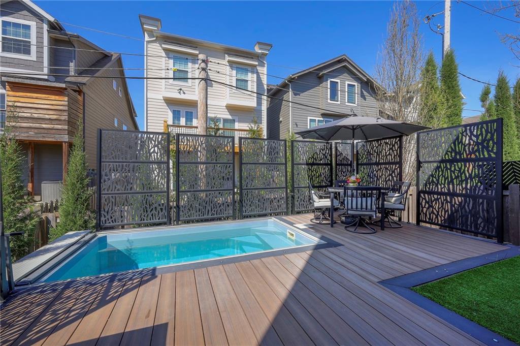 Perfect in Plaza Heights! This home, featuring the Madison floor plan, is the ultimate home for living your best life! From the brick facade to the thoughtfully constructed back yard deck, grill station and 365 days per year plunge pool, this home checks all the boxes - space, quality construction, ease of living, location and style. Built in 2019, this 3 bedroom, 2.5 bath, 2 car garage features designer finishes, updated light fixtures, custom built-in cabinets in living room, a wet bar with beverage center, solid surface countertops, stainless steel appliances, hardwood flooring, large kitchen island, fireplace and a oversized garage. HOA mows front yard. Opportunity to finish additional space in basement and to add elevator within existing elevator shaft. A quiet location that is walkable to so much- right in the heart of it all - a must see!