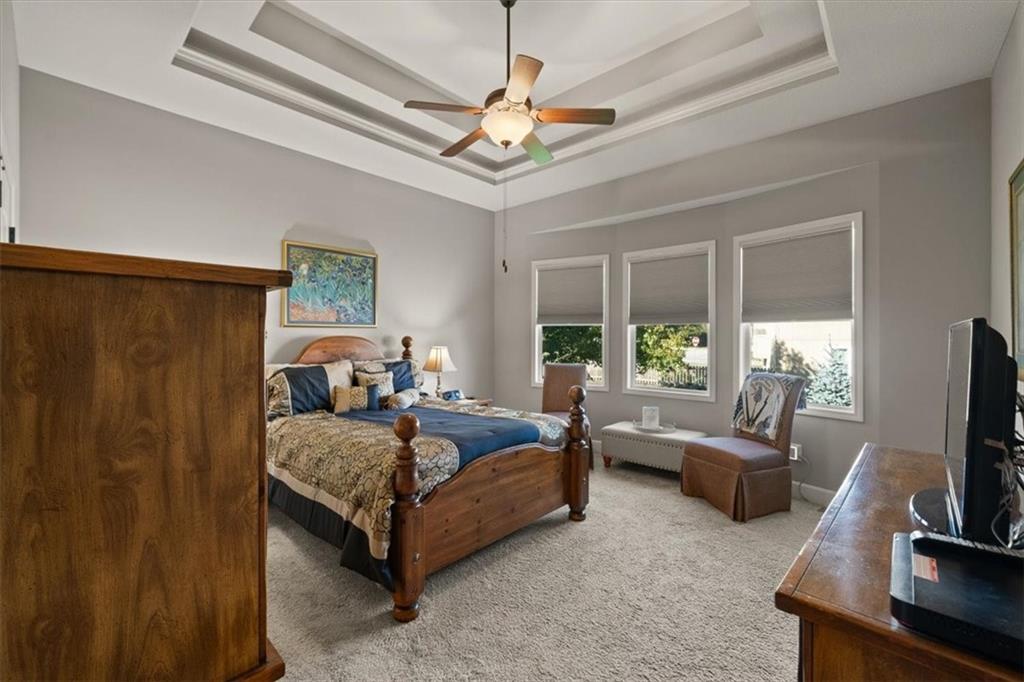 Meticulously maintained reverse 1.5-story home on a daylight lot featuring 4 bedrooms (2 on the main level), 3 full bathrooms, and a 3-car garage. The primary suite offers a luxurious ensuite bath with tile finishes, double vanity, walk-in closet, Euro shower, and a relaxing soaker tub. The laundry room is conveniently located just off the primary closet. The main level features gorgeous hardwood floors, plantation shutters, and a stunning stone fireplace. In the kitchen you will see granite countertops, a walk-in pantry, and stainless-steel appliances, making the it both beautiful and functional. The finished lower level includes two additional bedrooms and a spacious family room, perfect for guests, entertaining, or additional living space. Enjoy outdoor living with a screened-in covered deck featuring a fabulous outdoor fireplace—ideal for relaxing or entertaining year-round.