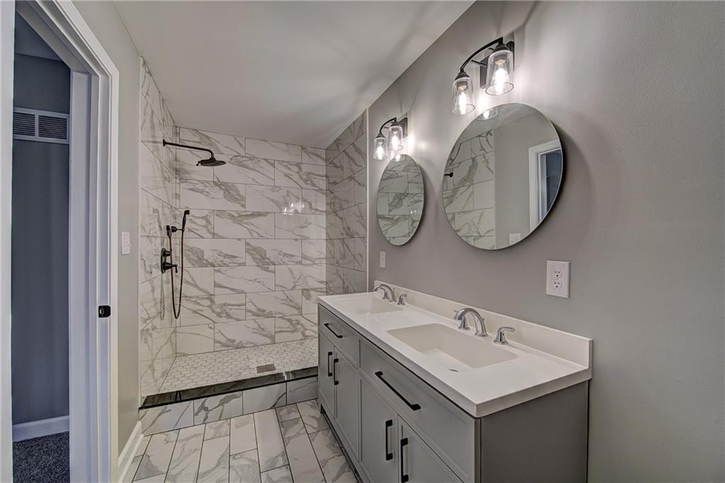 Beautifully updated interior with refinished hardwood floors, fresh paint, updated hardware, modern light fixtures, and renovated kitchen and baths. The kitchen features custom shaker cabinets and stainless steel appliances. Spacious primary suite with double vanity and a beautifully tiled shower. Finished walkout basement offers additional living space with luxury vinyl plank flooring, recessed lighting, and a full bath. Exterior features new LP lap siding, vinyl windows, and insulated garage doors.