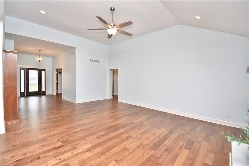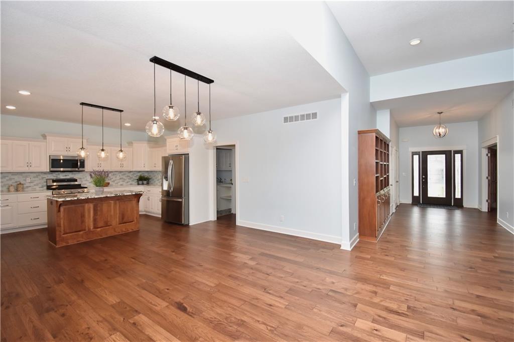 Beautiful custom-built reverse ranch with an open floor plan, meticulously maintained by the original owner. You’ll know this home is special when entering through the beautiful front door! The main level offers over 2,000 sq ft with three bedrooms on the main floor. Attractive landscaping, retaining wall, and welcoming front porch provide great curb appeal. Inside, you’ll find beautiful wood flooring throughout the living room, kitchen, dining area, entry, and third bedroom. The third bedroom features wide French doors and was previously used as a piano room for a baby grand. The kitchen is a standout with granite countertops, an abundance of painted cabinetry, gas stove, stainless steel appliances, walk-in pantry, spacious laundry room, and mud area. The living room features a fireplace, built-in shelving, and plenty of space for flexible furniture arrangement. The primary suite includes a large walk-in tiled shower with seat, tiled flooring, double vanity, and walk-in closet. The second full bath offers tiled flooring and natural light from a window. The finished lower level features a huge recreation room with a lighted play nook, two large bedrooms with oversized closets, and a full tiled bathroom. There is also over sq ft of unfinished space, including an excavated storage area beneath the front porch. Additional highlights include upgraded carpet on both the main and lower levels, a screened-in porch off the kitchen, upgraded lighting package, and a garage with a side service door and sidewalk to the front yard. The lot offers nice spacing between neighboring homes. Conveniently located near Lawson Lake, parks, and a golf course, and only 15–20 minutes from Liberty’s shopping and dining. PHOTOS COMING SOON!