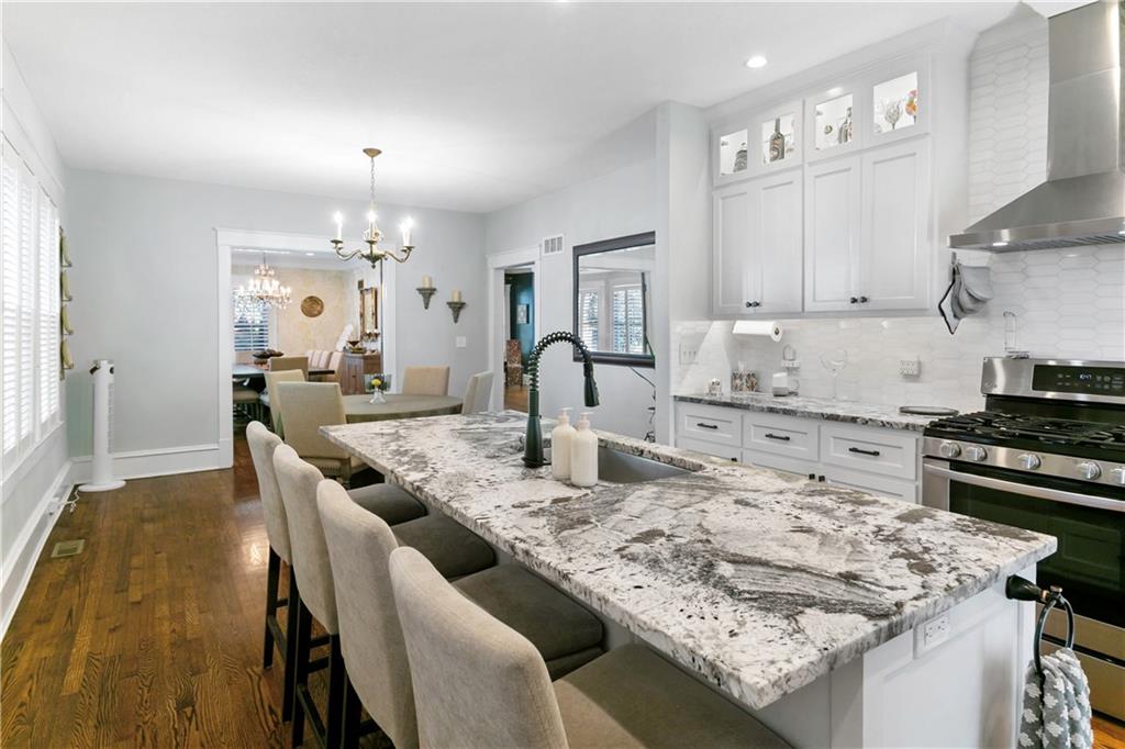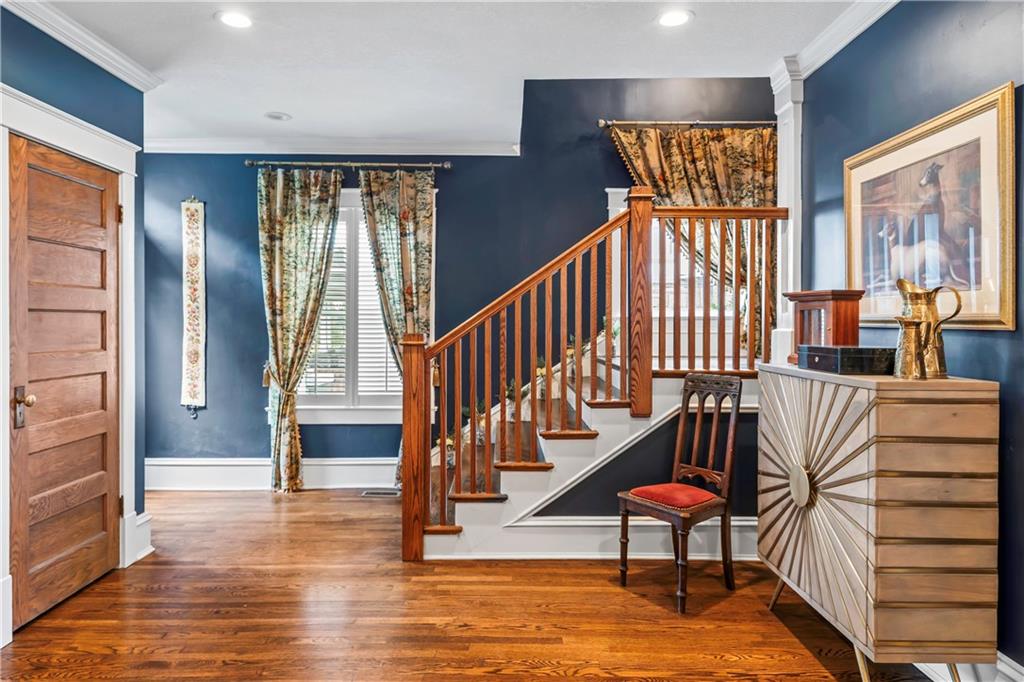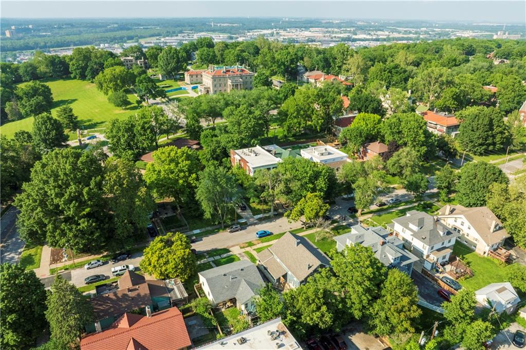 Timeless Luxury in the Scarritt Point Historic District just outside of Downtown. Experience refined living in this magnificent 1910 American Foursquare residence, gracefully situated on a picturesque street, just steps from acclaimed restaurants and vibrant entertainment. Discover sun-drenched interiors adorned with rich hardwoods, custom millwork, and premium fixtures. The grand formal entry sets an impressive tone, seamlessly connecting spacious living areas designed for both comfort and entertaining. Host unforgettable gatherings in the elegant dining parlor, featuring French doors, exquisite lighting, and a dramatic bay of oversized windows. The gourmet kitchen is a chef’s dream—thoughtfully designed with abundant cabinetry, a generous island with breakfast bar, granite countertops, and a secondary dining for casual meals. Retreat to the stately library, accented in deep hues, with a private side entrance. For ultimate convenience and privacy, the main level features a spacious guest suite—perfect for visitors or multi-generational living. A chic powder room is discreetly positioned for guests. Upstairs, the private quarters include a formal corridor, three secondary bedrooms, and a lavish primary suite with a spa-inspired bath and expansive walk-in closet with laundry hookups. Third level offers a contemporary recreation space with panoramic views and a full bath—ideal for relaxation or entertaining. Meticulously maintained, this 4,900-square-foot home features newer mechanicals, including zoned HVAC for year-round comfort. Outdoor living is equally impressive, with a fully fenced backyard, a spacious front porch perfect for morning coffee, and detached two-car garage. Located just a block away from the renowned Kansas City Museum and close to downtown amenities, this residence captures the timeless charm of this convenient and exclusive neighborhood.