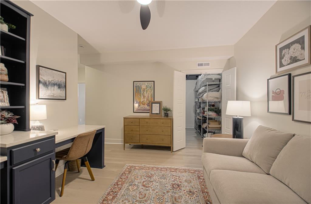 WOW! BETTER THAN NEW! Welcome to this beautifully crafted Woodland Hills APEX Reverse 1.5-Story by Prieb Homes, offering a thoughtful design & quality finishes throughout. A welcoming covered front porch sets the tone, while the north-facing covered deck provides the perfect space for year-round entertaining. Just below, enjoy the landscaped patio with a striking stone retaining wall & a fenced backyard. Inside, the open-concept plan features tall ceilings & 9' foundation walls, creating a spacious feel throughout the home. The expansive main level boasts a stunning great room featuring a stone fireplace with wood mantle & hardwood floors, flowing seamlessly into the well-appointed kitchen. Highlights include quartz countertops, a large island, a custom range hood, stainless-steel appliances & a walk-in pantry, plus an adjacent breakfast/dining area perfect for everyday living. The primary suite offers a peaceful retreat with coffered ceiling, a huge walk-in closet, dual vanities with quartz countertops & a luxurious shower with dual showerheads. A highly desirable 2nd main-level bedroom features an accent shiplap wall & access to a nearby full guest bath with a tile floor & quartz countertop. The main floor also includes a laundry room & a mud room with built-in drop zone bench & closet. The finished daylight lower level is ideal for entertaining, with abundant natural light in the large recreation room offering space for gatherings, games or hobbies. Also, 2 additional bedrooms with egress windows & walk-in closets, a full bath & a BONUS room with a HUGE walk-in closet, built-in desks with quartz countertops that works perfectly as an office or 5th non-conforming bedroom. Additional features include sprinkler, 50-gal water heater, low-E double-pane windows, tiled bath floors, main-level blinds, stunning staircase mirror, a generous unfinished LL storage room & 3 car garage. This home blends comfort, style & functionality—perfect for everyday living & entertaining.