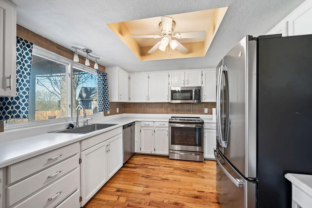 This spacious home offers 5 bedrooms (including 2 large non-conforming in the finished basement) and an incredible amount of living space—perfect for anyone needing room to spread out! Located on a huge corner lot in a highly sought-after neighborhood within the Blue Springs School District, this home combines comfort, functionality, and great outdoor living. The main level features a bright kitchen with a large window, farmhouse sink, and plenty of workspace for everyday living and entertaining. You’ll love the well-maintained wood-burning fireplace, creating a warm and inviting atmosphere. Step outside to enjoy the impressive 14x25 covered patio, perfect for relaxing or hosting, along with a hot tub and a fully wood-fenced yard for added privacy. The finished basement provides incredible additional living space, including a kitchenette, full bathroom, and two large non-conforming bedrooms, making it ideal for guests, hobbies, or extended living arrangements. The laundry room is conveniently located downstairs. The primary suite offers a large walk-in closet with a window, and you’ll find closet space throughout the home for plenty of storage. The hallway bathroom includes a jacuzzi tub for added comfort. Major updates include a water heater that is only 6 months old and an HVAC system less than 4 years old, giving peace of mind to the next owner. Additional features include a wide driveway, and the pool table can stay with the home if desired. This home truly offers space, flexibility, and great outdoor living—all in a fantastic location.