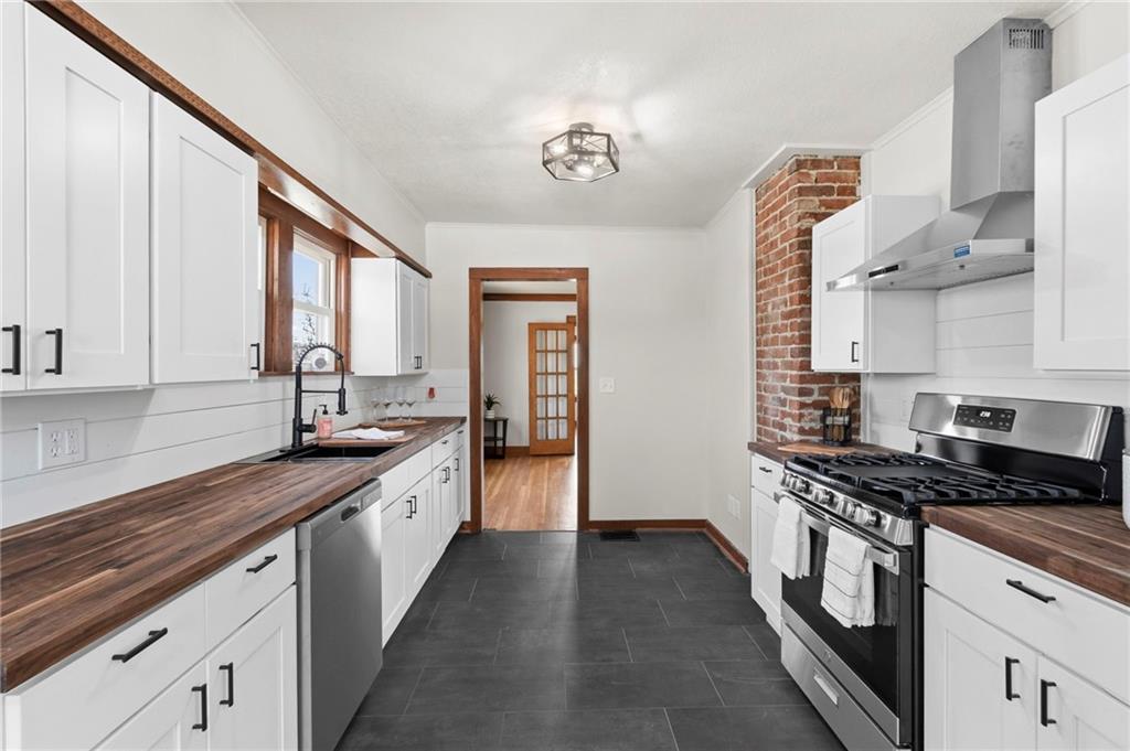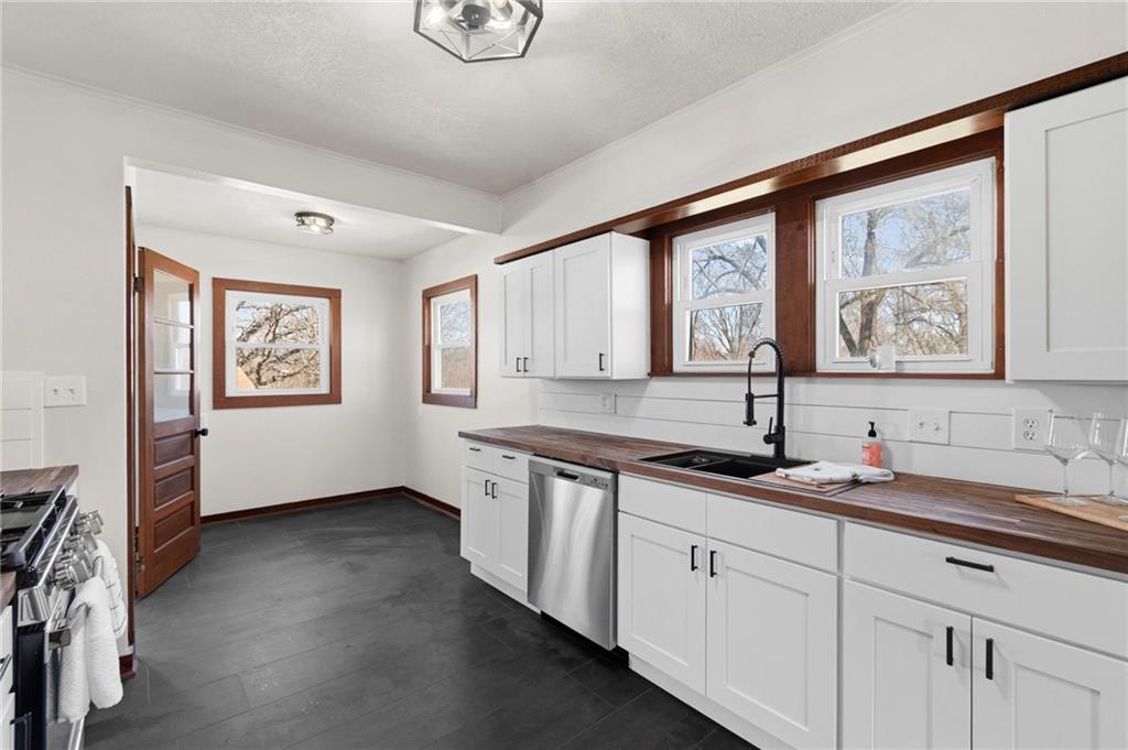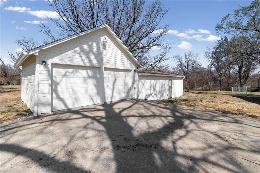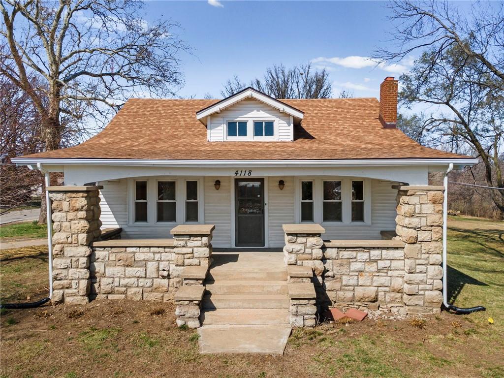 Beautiful 1925 home with a charming stone exterior located in Kansas City, Kansas, within the Turner School District. Thoughtfully remodeled with modern updates, this home has maintained its original character and timeless appeal.Inside, you’ll find a warm and inviting living room featuring a cozy fireplace, refinished hardwood floors, and classic trim details that highlight the home’s historic charm. Large windows bring in plenty of natural light, creating a bright and welcoming atmosphere throughout the main living spaces.The home features a completely remodeled kitchen with updated flooring, countertops, and cabinets, along with an updated bathroom that blends modern convenience with the home’s vintage character. Major system improvements provide peace of mind, including a new septic tank, new furnace, and new electric hot water heater. Additional updates include fresh interior paint and updated light fixtures throughout the home. The property also features replacement windows, a 200-amp electrical service panel, and a roof that has been updated from the original.A standout feature of the property is the huge two-car detached garage with a workshop area—perfect for projects, hobbies, or additional storage—plus a separate bay door ideal for a riding lawn mower or yard equipment. Situated on a spacious 0.79-acre lot, there is plenty of room for pets, outdoor activities, gardening, or simply relaxing outside. Enjoy quiet mornings or evenings on the porch while taking in the peaceful surroundings.Conveniently located just minutes from the highway, this property offers easy access for commuting while still providing the space and charm of a unique property. The oversized septic system also includes a one-year maintenance plan for the buyer, and a stackable washer and dryer on the main floor are included for added convenience.