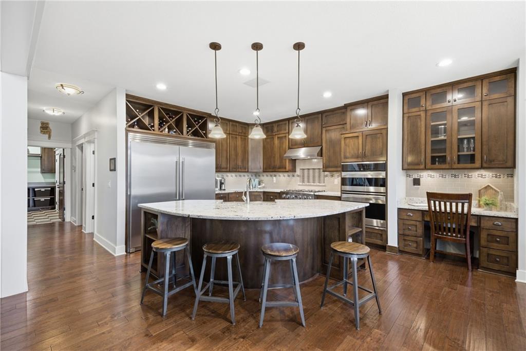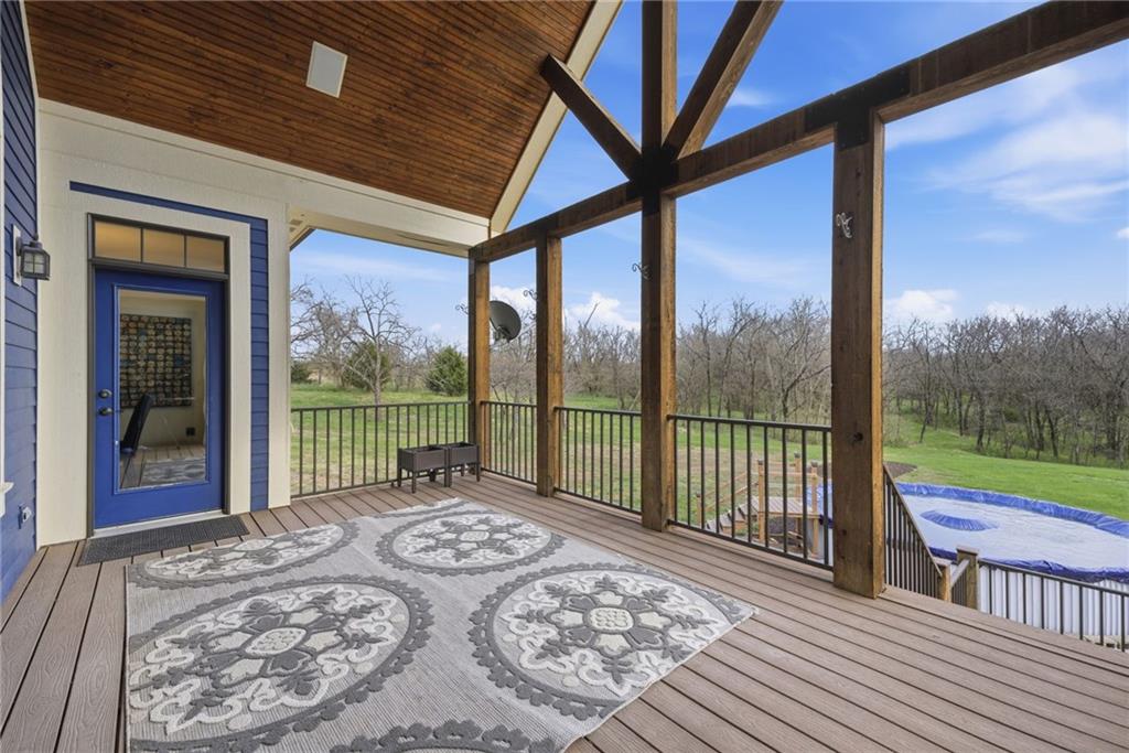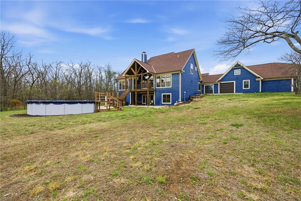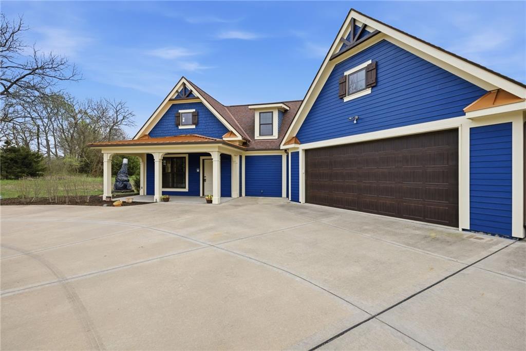 Tucked away on nearly 6 wooded acres (5.62±), this custom modern Craftsman estate offers a rare blend of privacy, craftsmanship, & luxury living just minutes from Johnson County in Northern Miami County. A tree-lined drive winds through mature timber to the circular drive & welcoming covered front porch. Inside, stunning honed HDWD floors flow through the main living areas. The foyer opens to a dining RM & a spectacular great RM featuring a vaulted ceiling, stone FP flanked by built-ins, & a dramatic floor-to-ceiling arched window framing sweeping forest views. The great RM adjoins the custom kitchen & BKFST area w/walkout access to a covered deck. The kitchen is designed for serious cooking w/granite counters, a large island, SS appliances including an Electrolux refrigerator/freezer, built-in oven, convection micro, 6-burner gas cooktop w/commercial hood, lazy-Susan corner cabinets, central vacuum w/convenient crumb drawer, & abundant storage. The main-LVL owner’s suite features honed HDWD floors & a spa-inspired bath w/glass shower, claw-foot soaking tub, & walk-in closet. A private office w/a built-in desk & cabinetry, full bath, & laundry RM w/sink complete the main LVL. Upstairs offers 2 expansive BRs w/walk-in closets & a full bath. The semi-finished walkout LL includes stained epoxy flooring, family & rec RMs opening to the patio & pool, plus a 4th BR/exercise RM & full bath. A breezeway connects the home to a private guest cottage w/bamboo flooring, full kitchen w/pantry, living area, BR, bath, laundry, its own garage, & patio overlooking the forest. Additional highlights include zoned HVAC, stand-by whole house generator, security system, water softener & purifier, Z-Wave ready for home automation (you provide computer), indoor/outdoor surround sound -- 6 Polk speakers in kitchen, breakfast, deck & patio, cell booster, & an enclosed goat yard w/outbuildings. Secluded acreage, scenic views, & refined finishes create a truly exceptional retreat.